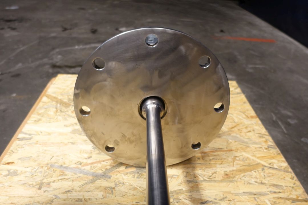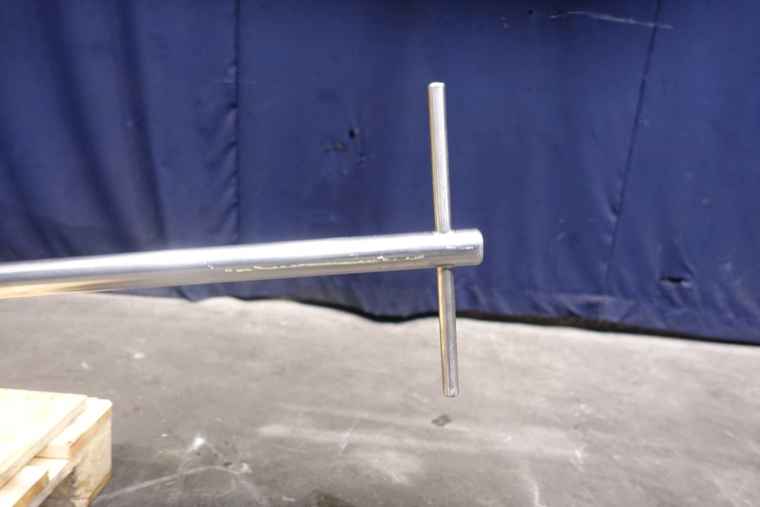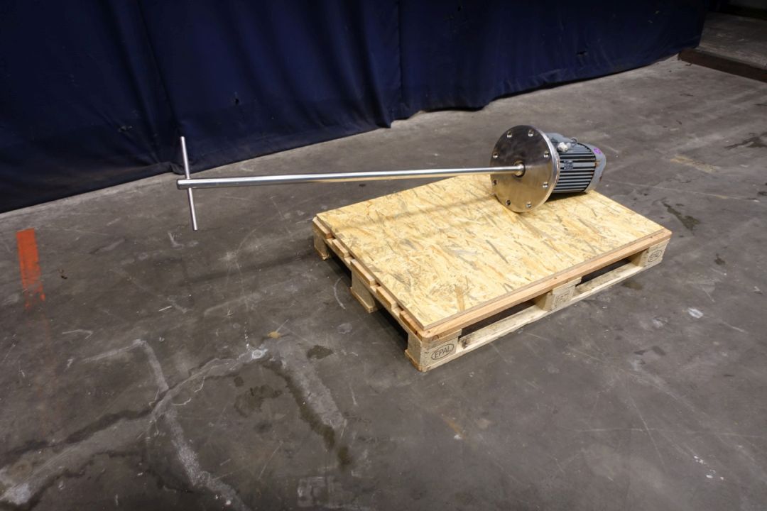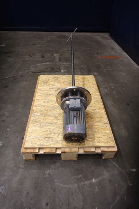 Pin agitator / mixer. Length of the shaft: 130 cm, diameter shaft: 30 mm, length pin: 26 cm, flange diameter: 35 cm. Vem motor: 50 Hz - 4,0 kW - 400 / 690 V - 5,1 A - 1440 rpm. Total dimensions: 175 x 80 x 30 cm. Weight: 98 kg.