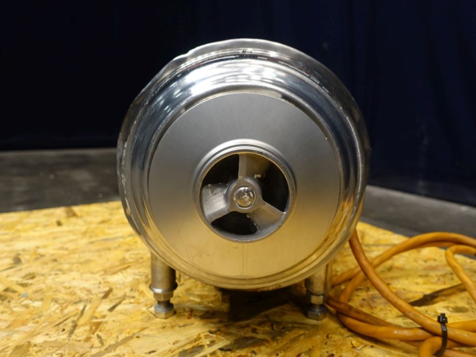 Sanitary centrifugal pump. Current motor: 7,5 kW - 15 A - 2900 rpm. Impellor diameter: 165 mm. Pressure 2,5 bar. Connections: 3'' / 2,5'', DIN.