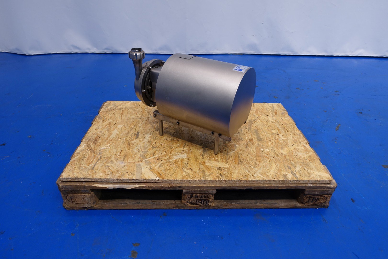 Sanitary centrifugal pump. Motor: 3,0 kW - 2.920 rpm. Impellor diameter: 163 mm. Pressure: bar. Connections: (in) 2,5" SMS / (out) 2" SMS. Dimensions: 57x33x43 (lxwxh) cm - weight: 80 kg.