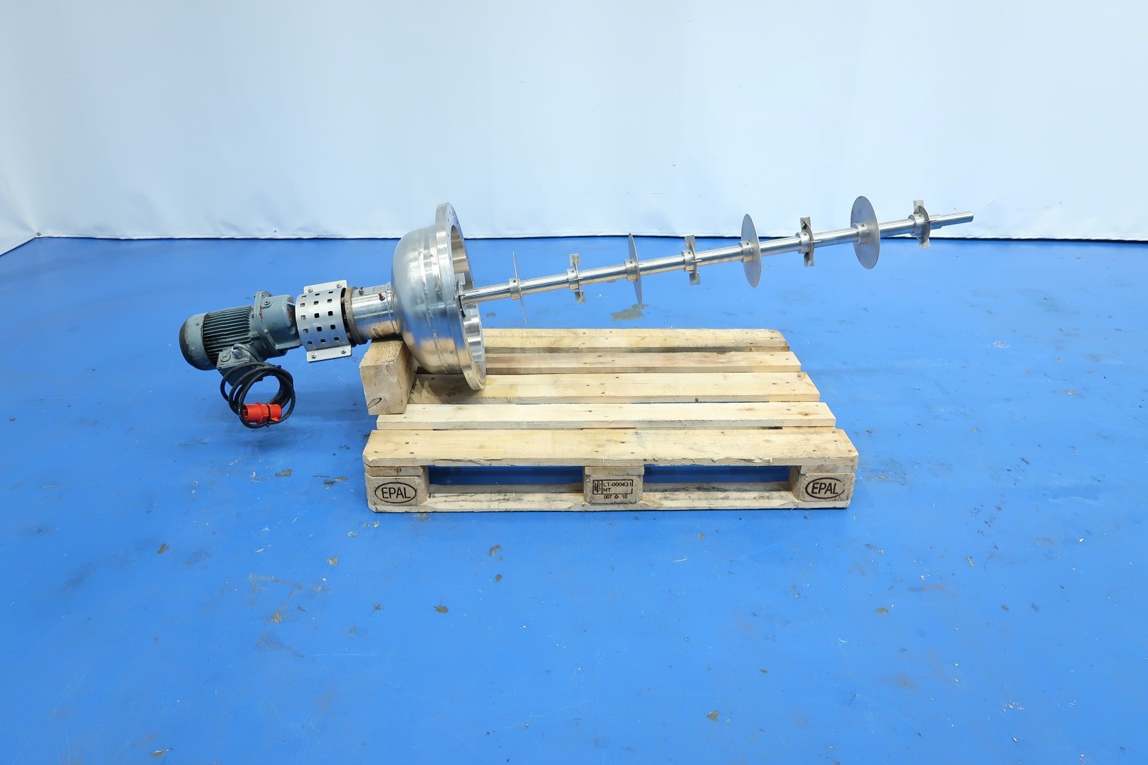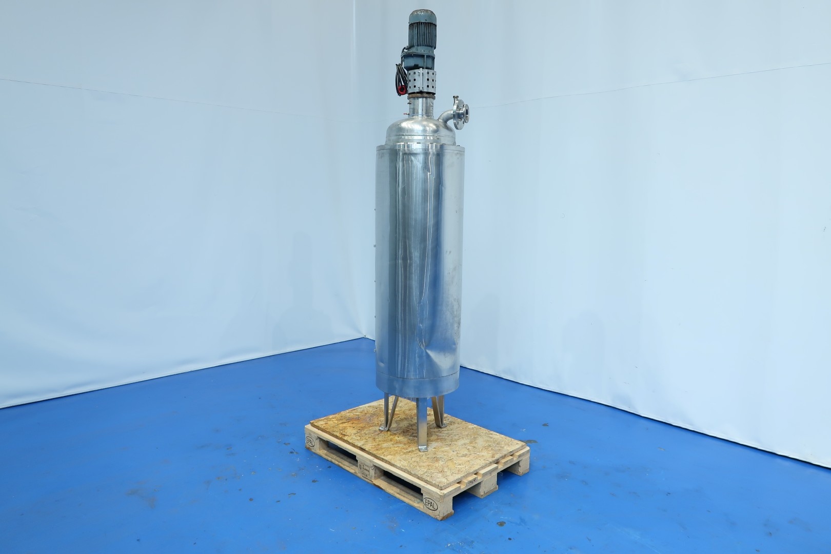 Inline mixer previously used as a mixer for chemicals in vegetable oil. Vessel insulated to keep product warm, capacity ca. 140 ltr, with special layered mixing system. Motor: 0,75 kW - 2,15 A - 173 rpm - 50 Hz. Inner dimensions; cylindrical height: 145 cm- diameter: 39 cm. Outer dimensions: 50x50x248 (lxwxh) cm - weight: 305 kg.
