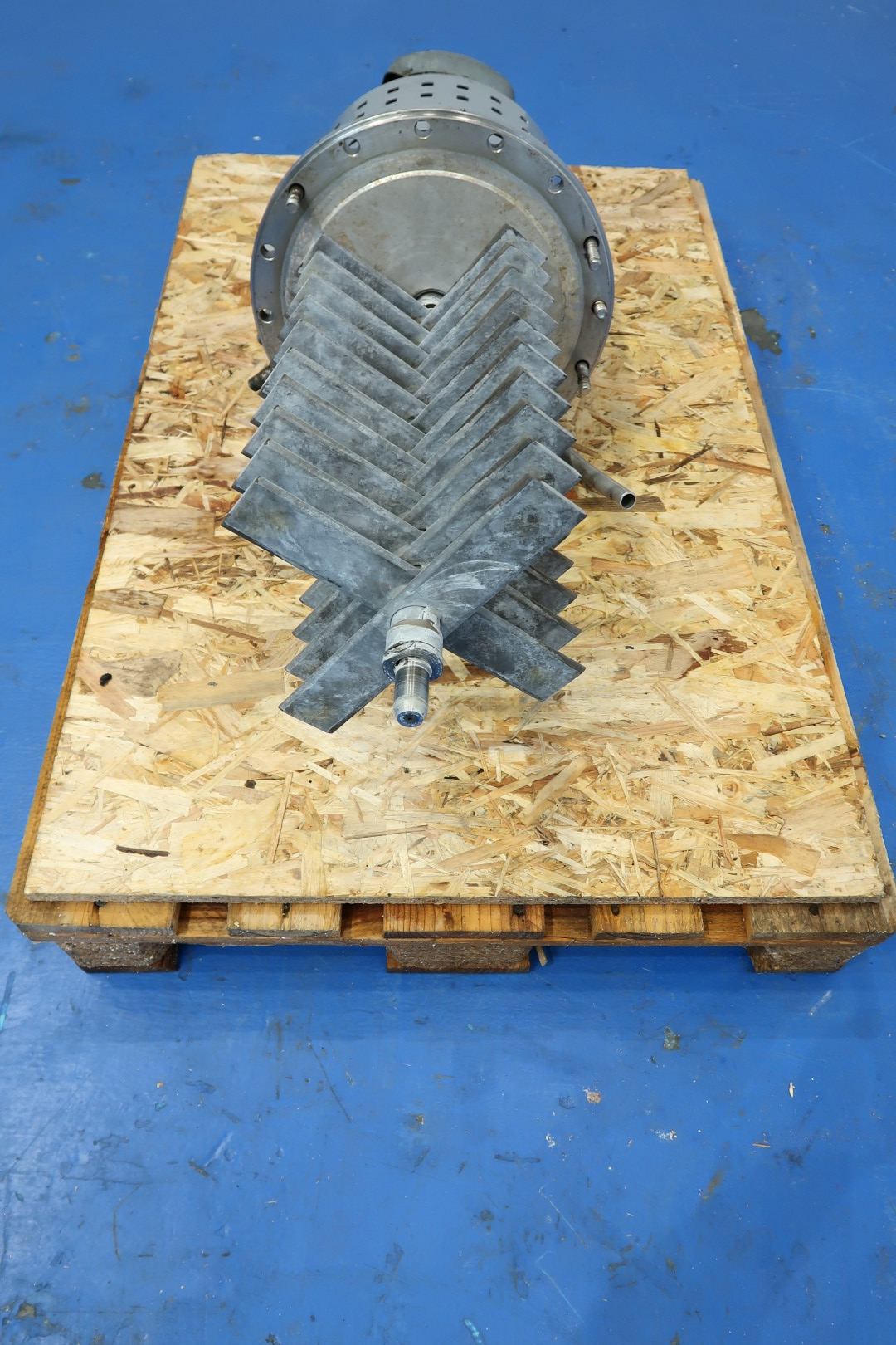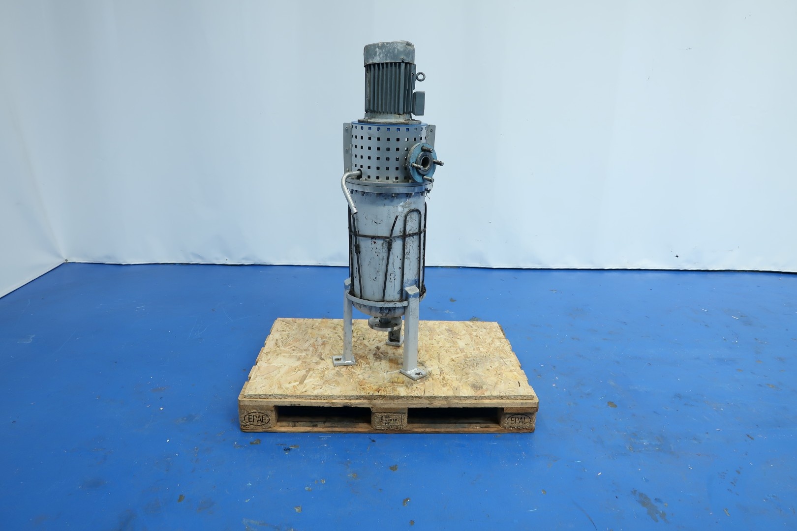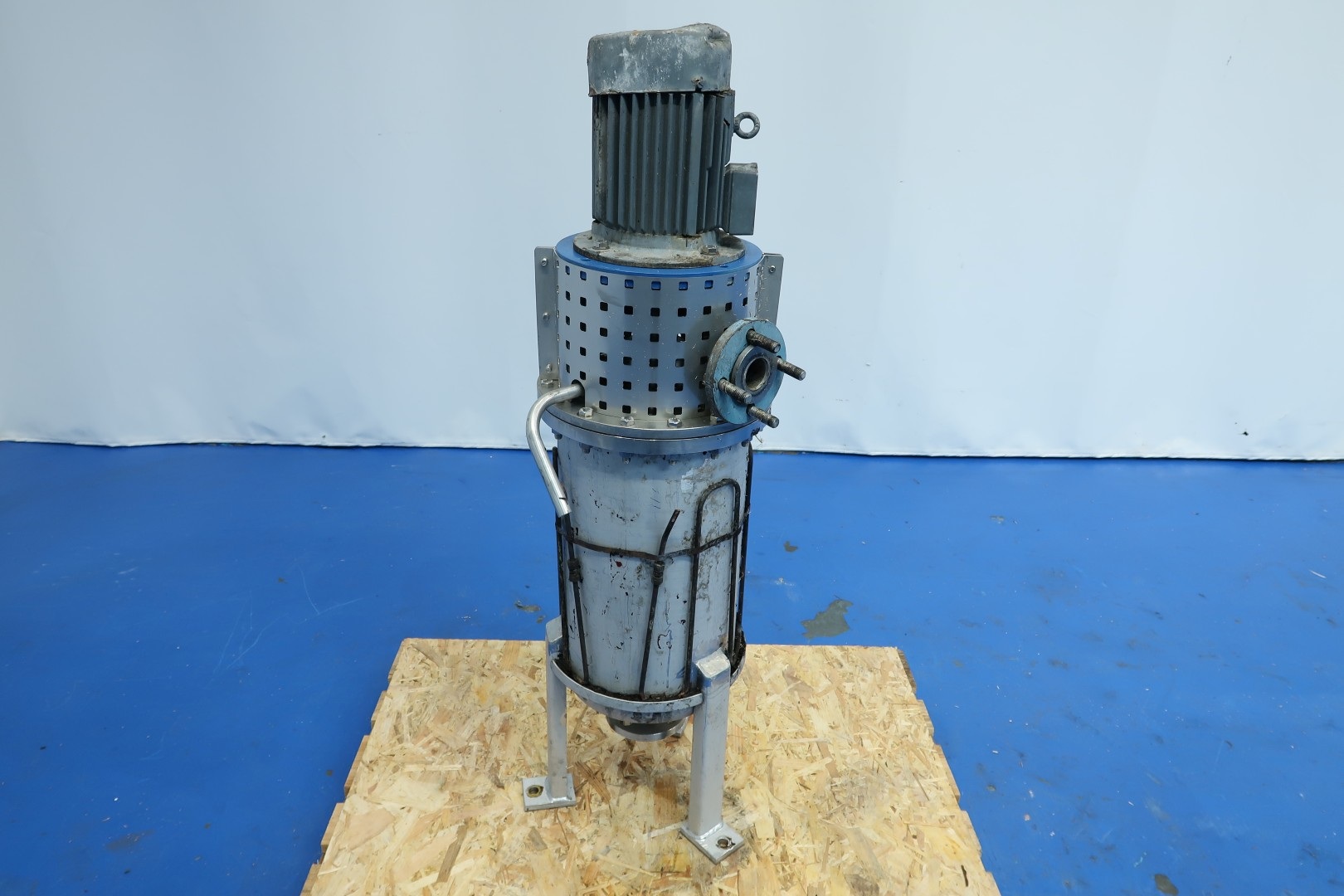 Inline mixer Previously used as a mixer for chemicals in vegetrable oil. With tracing around to keep product warm, capacity ca. 75 ltr, with 2x 20 knives. Inner dimensions; cylindrical height: 57 cm - diameter 29 cm. Outer dimensions: 42x38x136 (lxwxh) cm - weight: 165 kg.