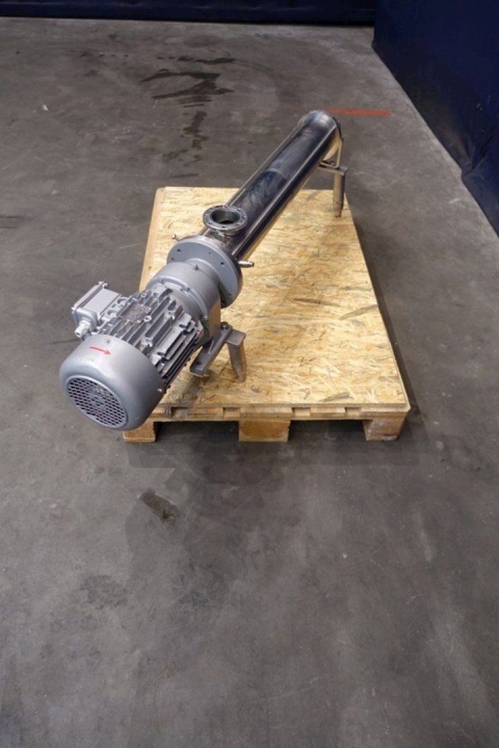 Already reconditioned eccentric screw pump. Stator diameter 40 mm. Stator length 400 mm. Connections: In and Out 2,5'' flange. Current motor: 2,2 kW - 5,2 A - 50 Hz. n1: 1.440 rpm - i: 17,61 - n2 pump speed: 81 rpm. Frame mounted. Total dimensions: 142x30x38 (lxwxh) - weight: 106 kg.