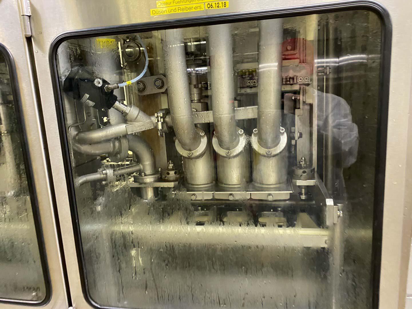 Cup filling, sealing and packing machine (0.25 - 0.5 + 1 liter) Ampack Ammann KF2/3 Ultra Clean Carousel filler for filling and sealing cups with easy format change. Used for filling of yogurt and quark products with a shelf life of up to 40 days in the cold chain. Current cup size 2x round ø 95/ 85 mm & 3x square 85/115, 119 mm. (easy to adapt to round 1 litre but not included). The filling machine has cup decontamination by injecting H2O2 and sterile air flooding, lid decontamination by infra red light. Free space before and after the main fillers for addition fillers in future. Main filler 1: 3 cups each stroke up to 500 ml for round 85 and 95 mm and square 85 mm, main filler 2: 2 cups each stroke up to 1 liter for square 115 and 119 mm. Empty space for 3rd filler for pre-and post-filler. Servo sealing station and dating unit for inkjet (without devices) Controls: Siemens S5. Including CIP return pump. Ampack ASGP4 automatic packer for cups into a tray. Year 1999, controls: Retrofit Siemens S7-1500 (year 2020). Sema Snap lid applicator system to put snap on lid for cups 95 mm, also possible with caps filled with cereals. Year 2014. Working hours: +/- 4.000. Controls: Siemens S7-300. Sema Tray erector: Device for automatic formation of cartons from flat plano carton. Various sizes open trays (see the photo of the cartons with all formats). Complete with Nordson ProBlue 4 hotmelt. Year 2013, working hours: +/-15.000. Controls: Siemens S7-300. "