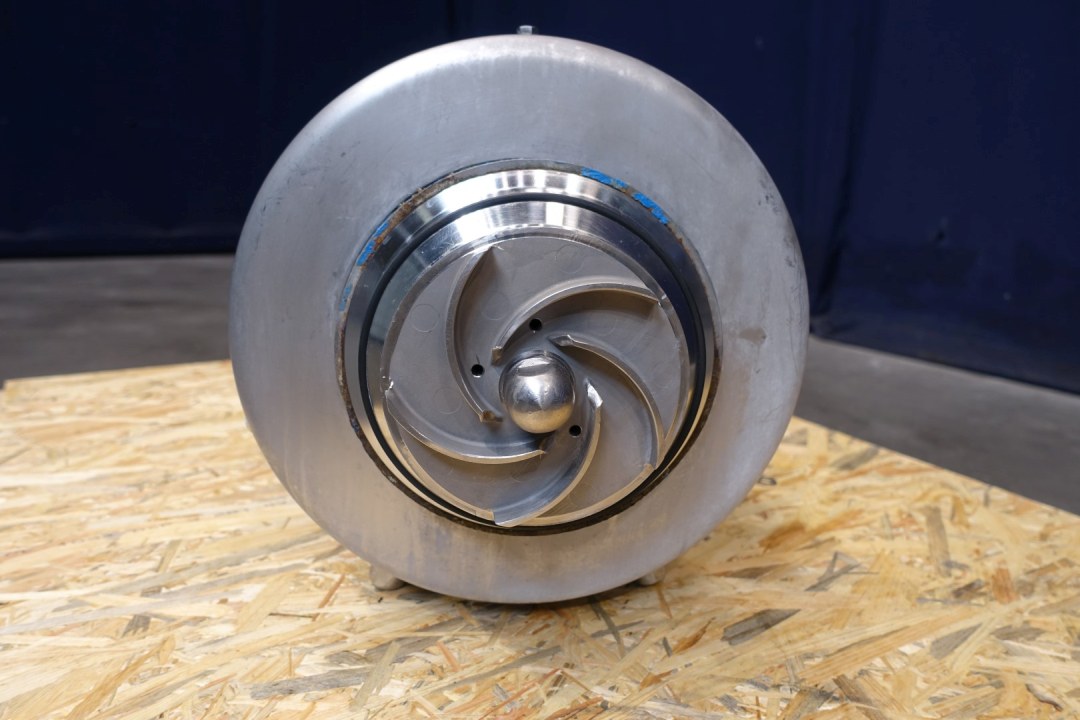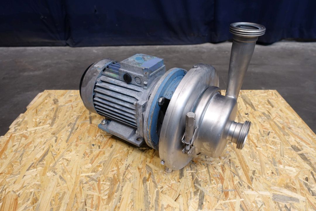 Sanitary centrifugal pump. Current ABB motor: 3,0 kW - 6,2 A - 2.800 rpm. Impellor diameter: 135 mm. Connections: (in) 2" Din / (out) 2" Din. Dimensions: 53x31x41 (lxwxh) cm, weight: 86 kg.