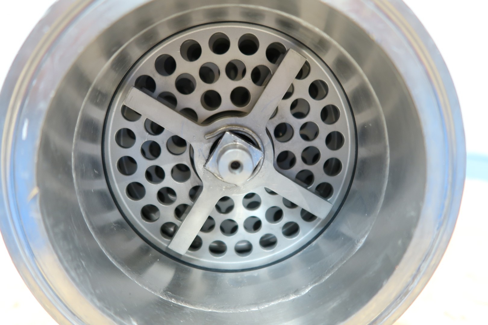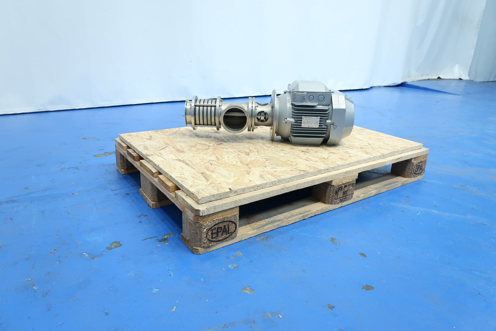 Inline mixer, already rebuild for mixing butter and butter blends. Rotor speed: 1.425 rpm, connections: (In) 4" Tryclamp / (Out) 4" TryClamp. Motor power: 5,5 kW - 11,7 A - 50 Hz - 1.4255 rpm. Testmovie available. Dimensions: 72x22x26 (lxwxh) cm - weight: 89 kg.