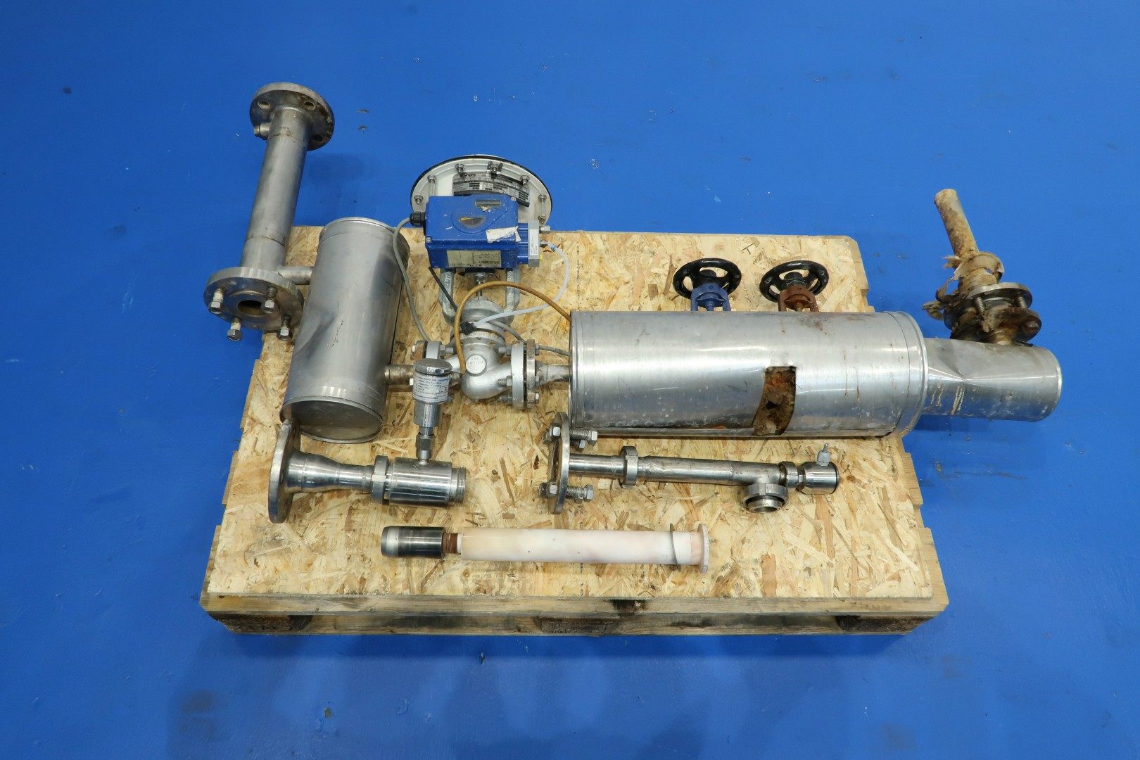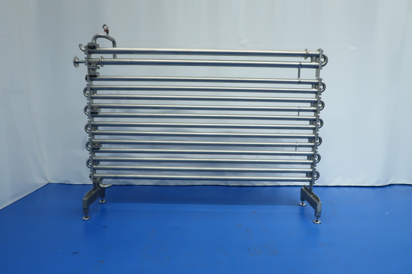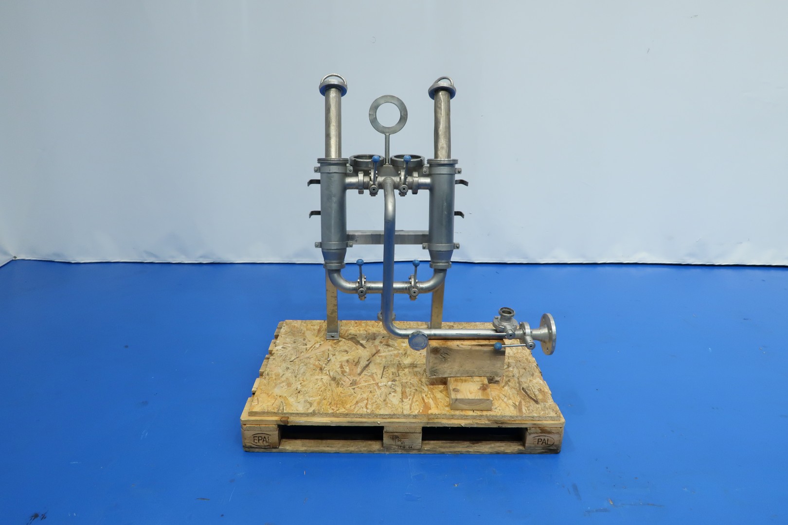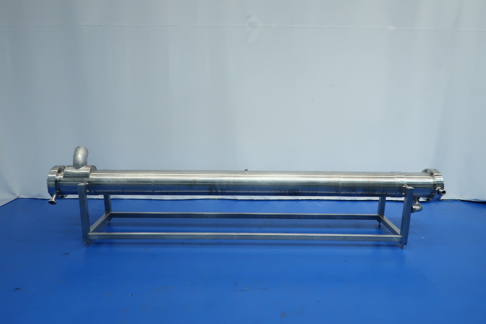 Heater unit with Direct steam injection (DSI) and flash cooling. previously used on milk concentrate 50%. Extreme fast heating and cooling of sensitive products. The Unit exist of: infeed (centrifugal pump Fristam 7,5kw, Tubular pre heater/air cooler (recuperation system), tubular heater by steam/hotwater indirect to ± 80°C, Steam injection direct in the product (heating up to between 90°C or max 145°C) and flash vat to cool product down by vacuum), oufeed pump (Fristam 7,5kW with flushed seal and double filter. The steam is filtered before injected by a steam filter (make Pal). with water pump, product and steam valves and piping. (excluding liquid ring vacuumpump and controls) can be offered on request.