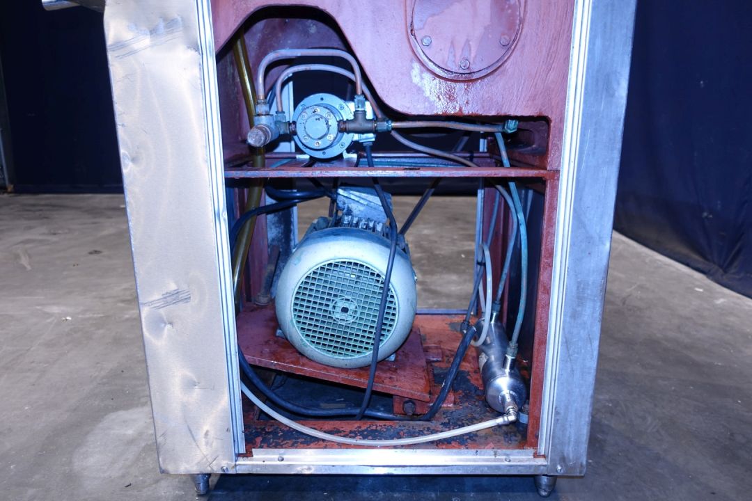 High pressure homogeniser. 1 stage with manual pressure control. 3 Pistons, piston diameter: 32 mm. Stainless steel cladded. Connections: 2" SMS. Current motor power: 7,5 kW - 15,8 A - 1445 rpm - 50 Hz. oil circulation pump. Maximum pressure in current confirguration with this motor 140 bar. (max capacity up to 1,600ltr with 1-7/16"pistons = 36mm) Pressure indicator Manometer (damaged). pneumatic Bypass/overpressure valve . Excluding: control panel. Total dimensions: 100 x 80 x 150 cm. Weight 690kg.