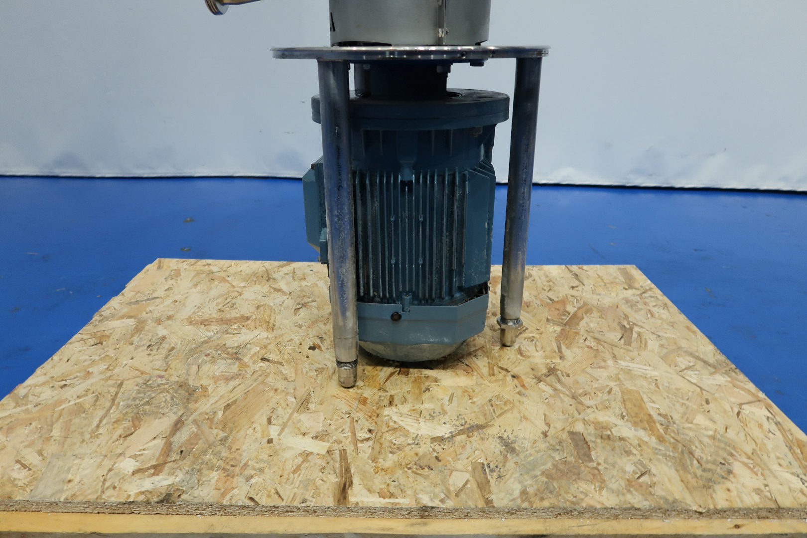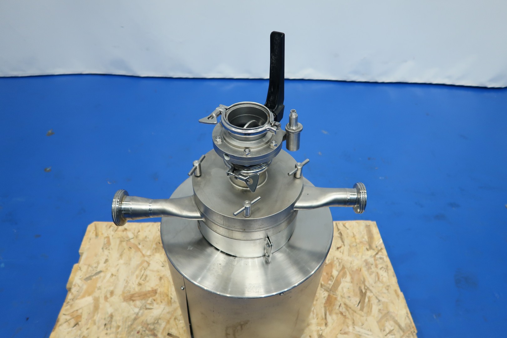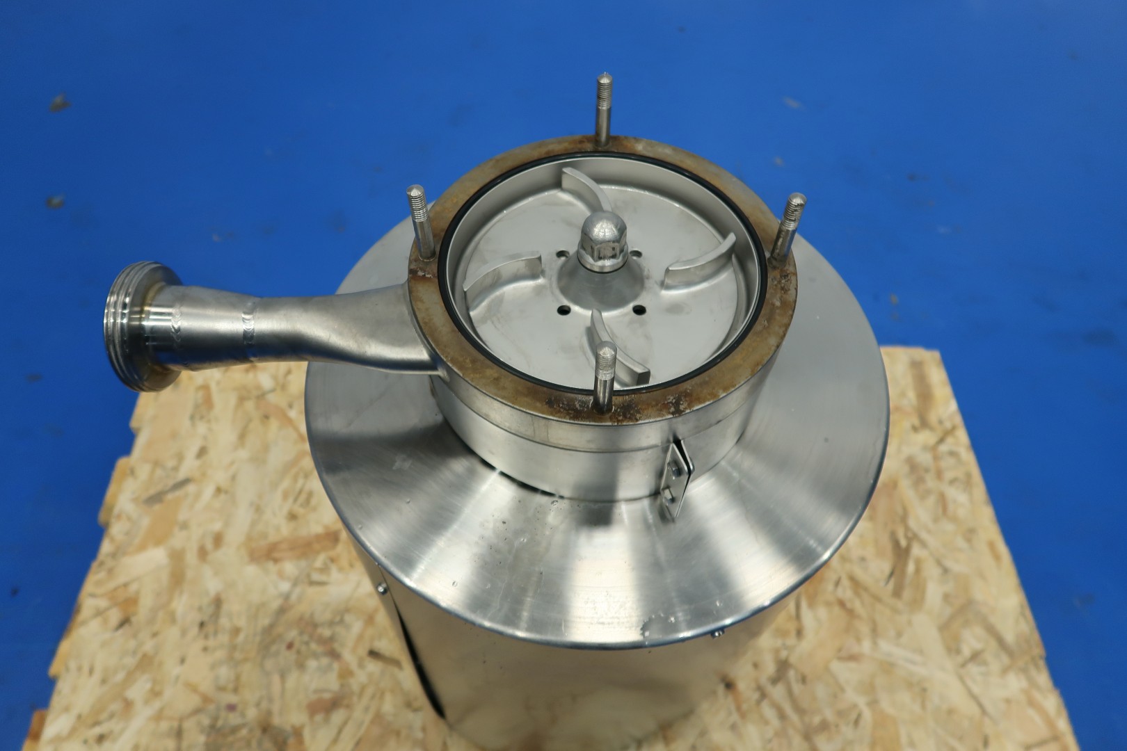 Powder dissolver with hopper with cover. Hopper volume ca. 100 liter. Order no. 27150591. Impellor size 170 mm. Motor: 7,5 kW - 13,9 rpm, 50 Hz - 2.915 rpm. With manual butterfly valve on infeed under hopper. The powder mixer can be used in any situation where powder is first added and then dissolved in liquid. Milk powder: 60 kg/min, whey powder: 75 kg/min, lactose: 150 kg/min and sugar: 130 kg/min. Connections: (in) 2" Din - (out) 1,5" Din. Dimensions: 80x80x140 (lxwxh) cm - weight: 120 kg.