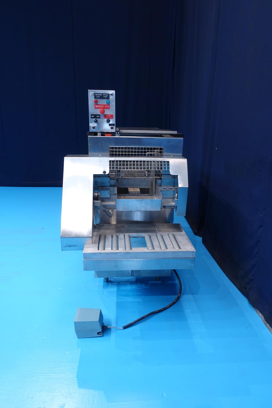 Semi automatic packer, for pefolded displays. Pneumatic controls. Filling principle: side loading. Dimensions: 207x90x172 (lxwxh) cm.