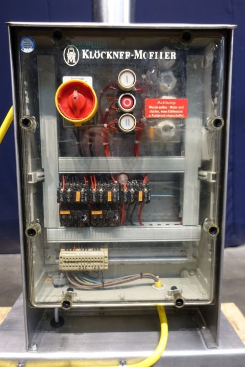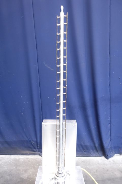 Scraped surface heatexchanger (SSHE). 1 Vertical Product cylinder, tube: Ø 96 mm, length 1.500 mm, rotor Ø 38 mm with 2 scrapers. Cylinder material: stainless steel. Surface per tube 0,19 m² and volume per tube 10,86 ltr. Electric drive motor 1,6 kW - 50 Hz - 380-420 V - 4,1 A Variable speed controlled manual reductor. Connections: 4 x 1,5" Din. For heating or cooling medium by water. With control/operation panel. Total dimensions: 85 x 57 x 210 (lxwxh) cm - weight 161 kg.