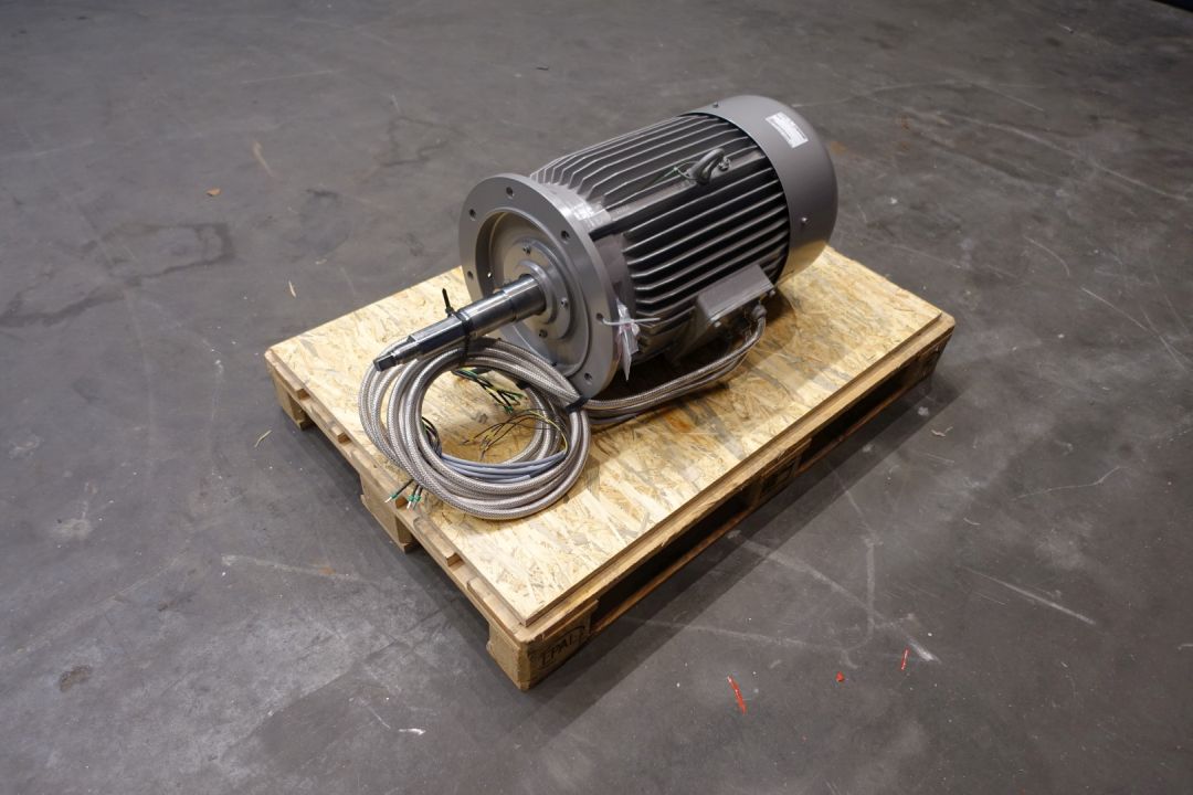 Brand new (spare) motor of Stephan UMM 130 universal mixer - cooker machine (special rotor with extended shaft). Motor: 30,0 kW - 400 V - 51 A - 50 Hz - 2.930 rpm. Total dimensions on pallet: 120 x 80 x 60 cm. Weigth: 291 kg.