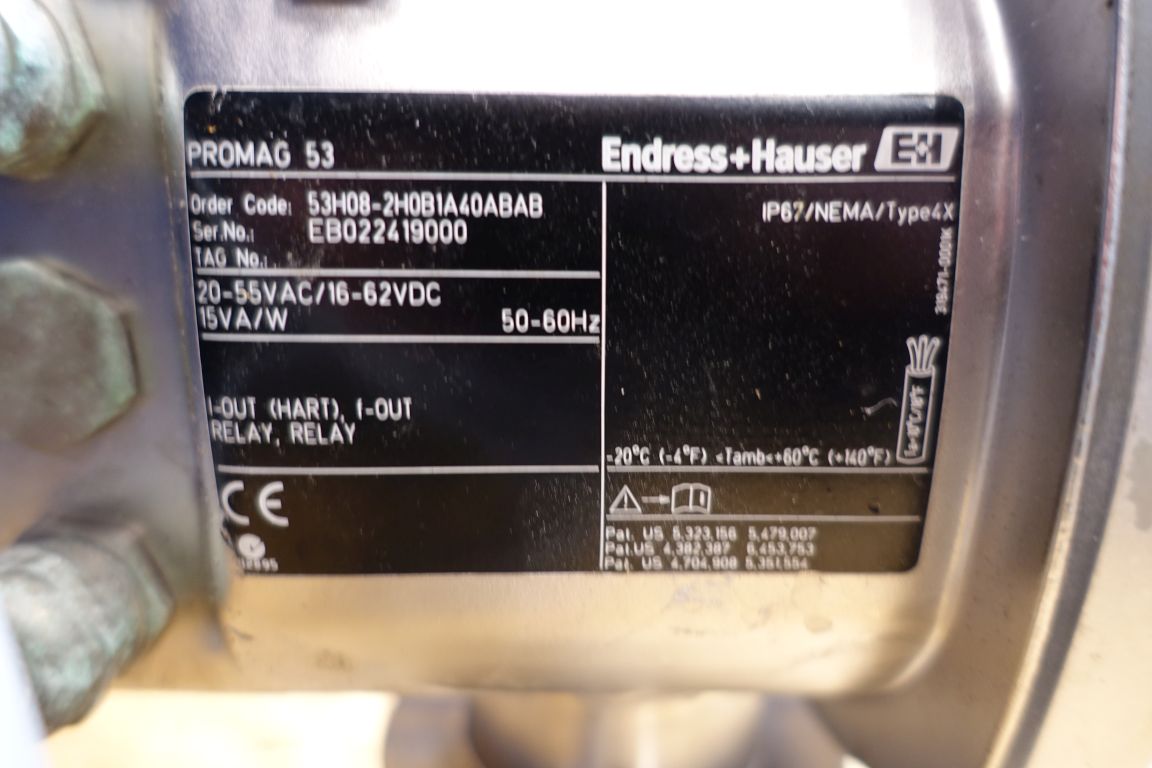 Magnetic flow transmitter. Connections: DN08/DN08, SMS. Electronic display. Endress & Hauser Promag 53.
