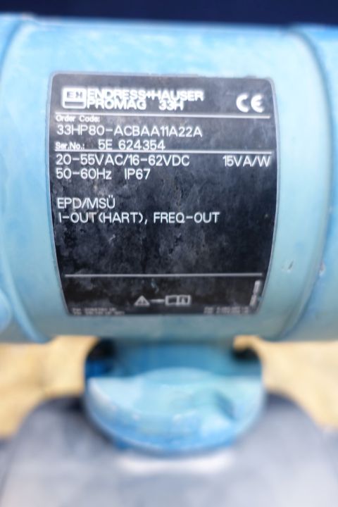 Magnetic flow transmitter. Connections: 3''/3'', SMS. Electronic display. Endress & Hauser Promag 33H.