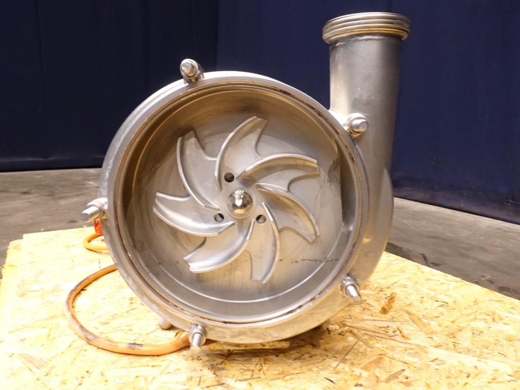 Sanitary centrifugal pump. Current motor: 5,5 kW - 11 A - 1750 rpm. Impellor diameter: 200 mm. Connections: DN80 / DN65, DIN.