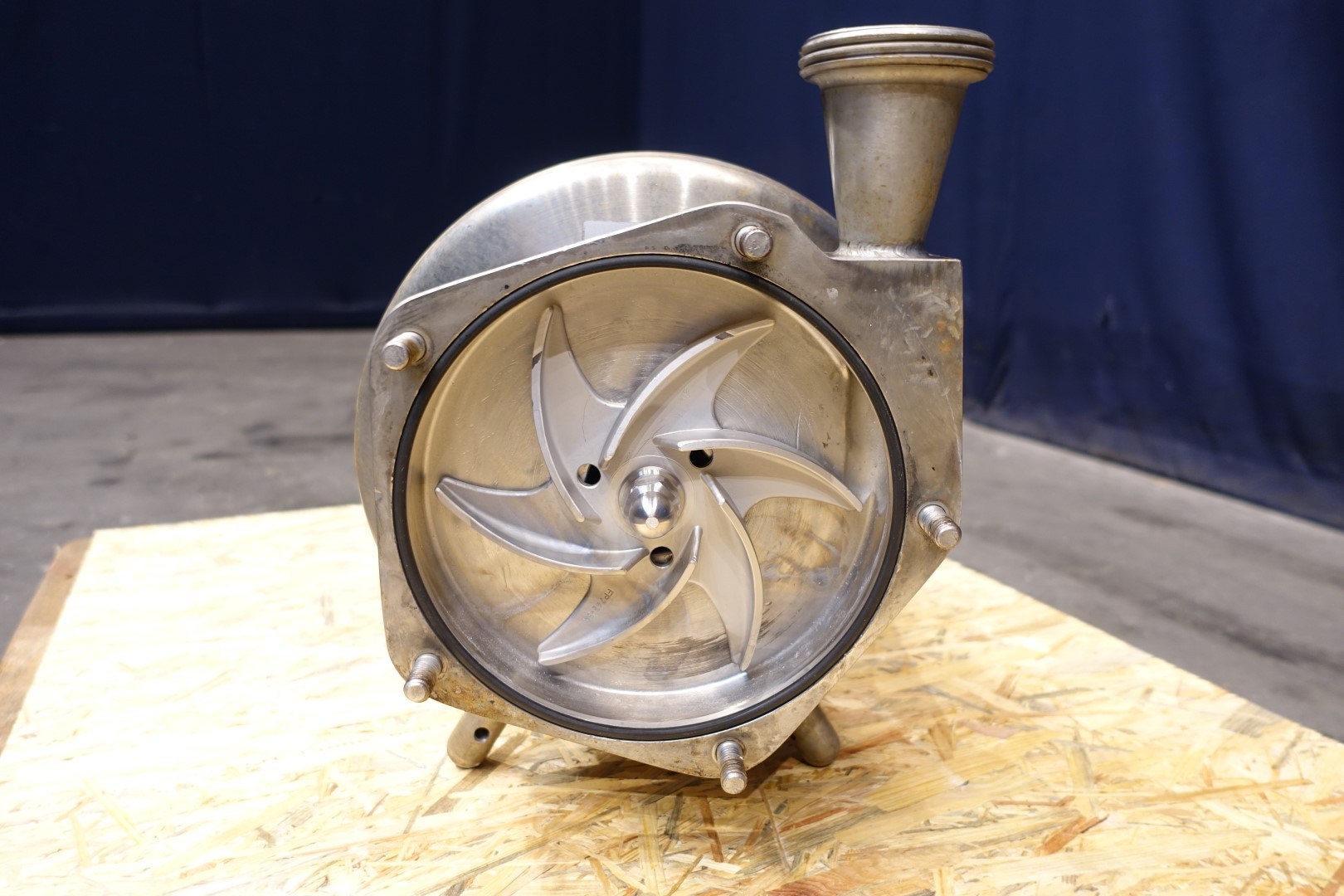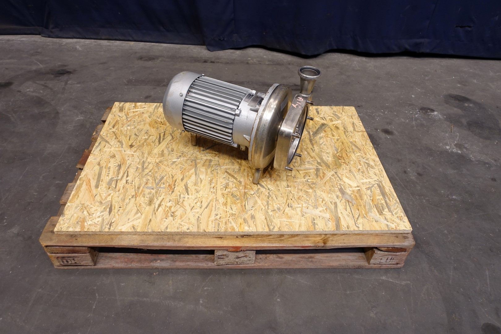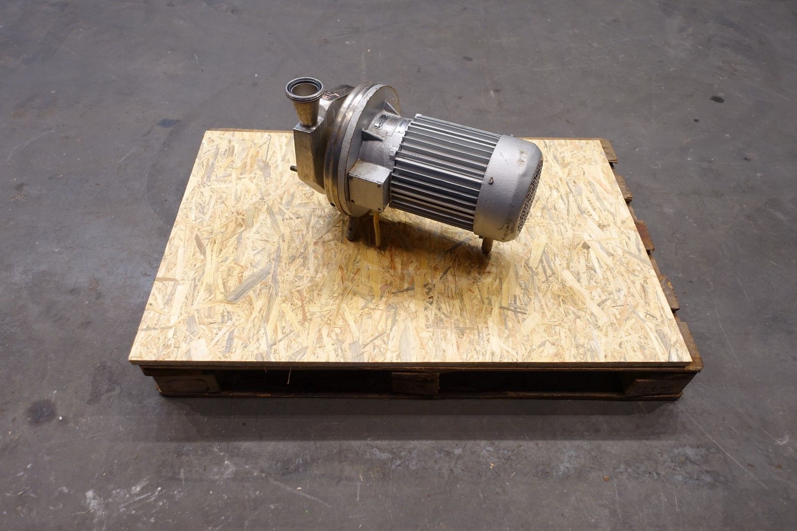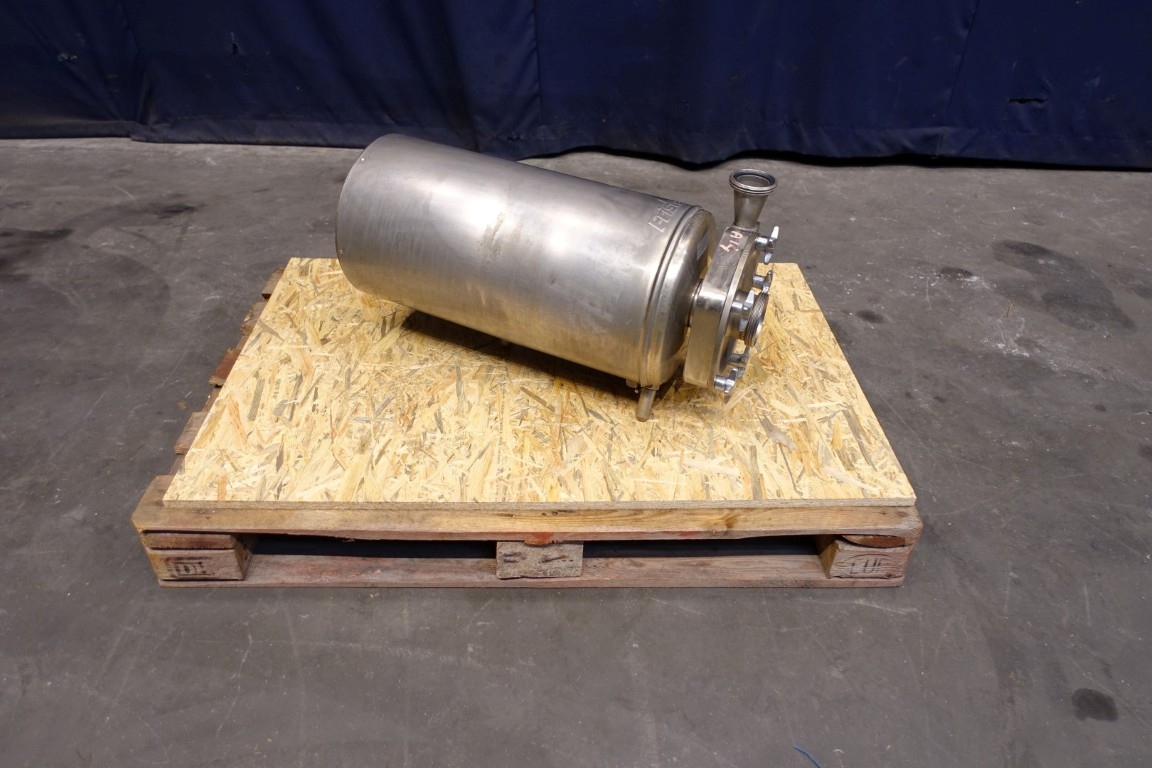 Sanitary centrifugal pump. Motor: 5,5 kW - 12,0 A - 2.890 rpm - 50 Hz. Impellor diameter: 195 mm, approx 5 bar. Connections: (in) 2,5" Din / (out) 2" Din. Total dimensions: 73x30x38 (lxwxh) cm.