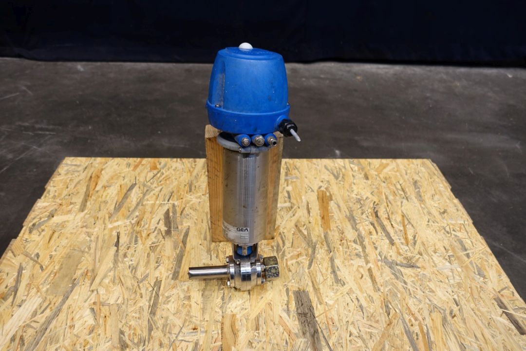 Single pneumatic butterfly valve. Pneumatic activated 1-way. Connections: 2 x 1" pipe. Min pressure 4,8 bar - Max pressure 8,0 bar. Dimensions: 20 x 20 x 50 cm. Weigth ca 7,5 kg's.