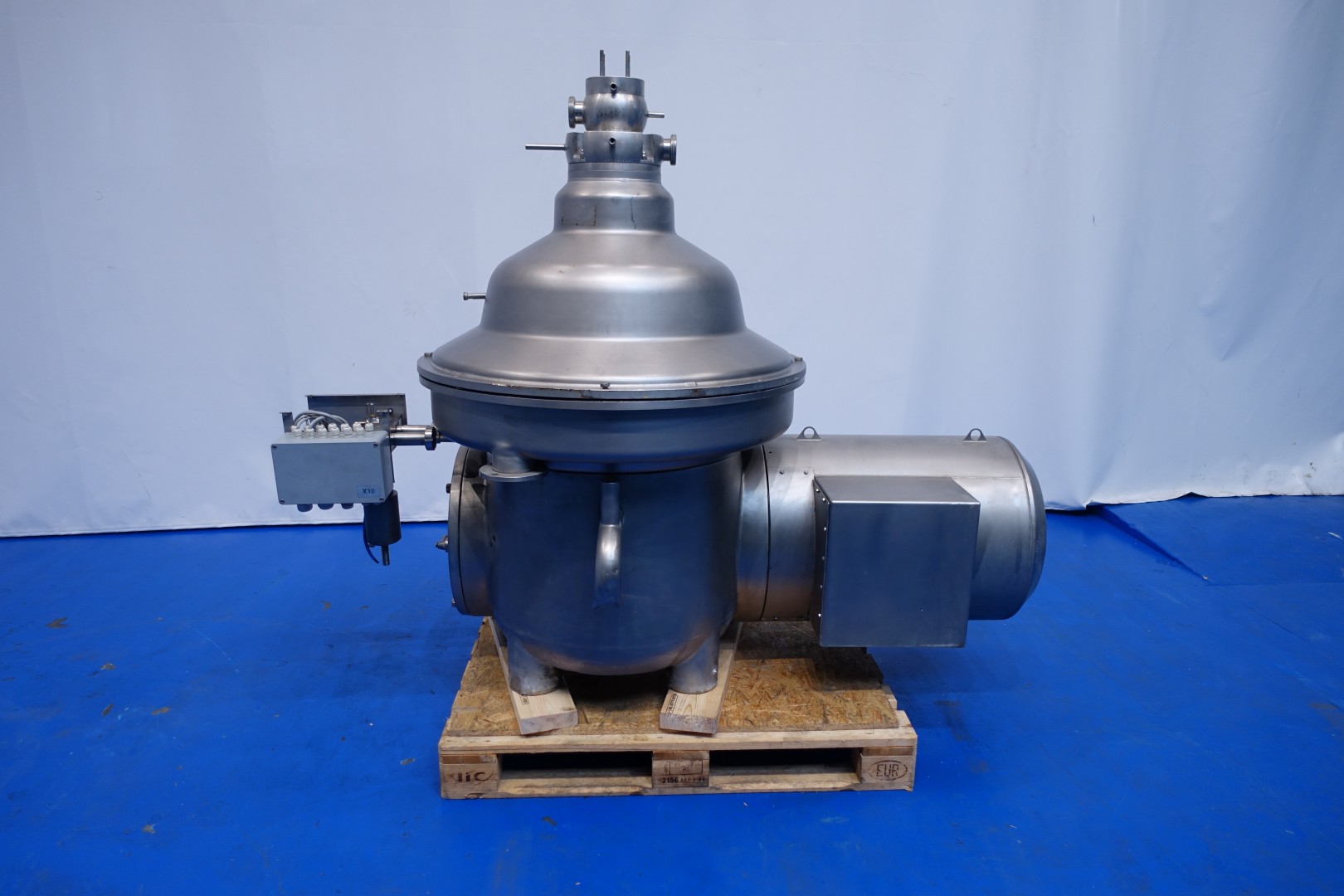 Cold milk skimmer, self cleaning. Special design with thermetic cream outlet (no pump), for cold skimming, therefore the cream is pushed out with hermetic system but the inlet pressure (no cream pump/gripper inside machine), without damaging the fatt bowls even at low temperature, including Bowl, motor cover and manouvering water valves. Motor 22 kW - 41 A - 1.775 rpm - 60 Hz. Bowl speed 5920 rpm. Capacity variable 7.500-15.000ltr/h, Weight: 1.686 kg. Machine, currently without horizontal shaft, top cap, tools, baseframe, liquid clutch, can be complete on request.