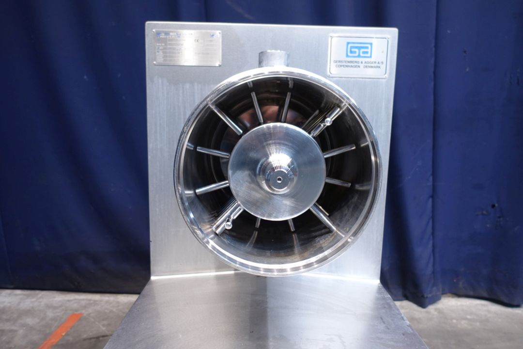 "Stainless steel pinmixer with 1 cylinder. Cylinder diameter 300 mm, length 300 mm. 14 pins on the shaft/rotor and 24 pins on the double jacketed cylinder housing. Motor power: 37 kW - 72 A - 1.475 rpm. Design pressure: 80 bar, max. work temperature 100 °C. Excluded: front lid, controls and documentation. Total dimensions: 68 x 119 x 140 cm - weigth: 572 kg's. "