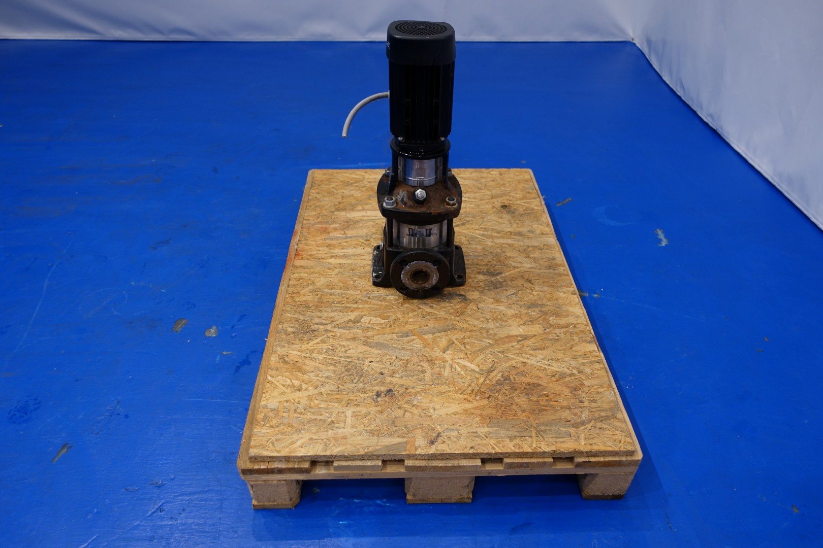 Grundfoss water pump. Non sanitairy. Serial number motor: DE6204.27.C3. Connections: (In) 2,5" Flange / (Out) 2,5" Flange. Total dimensions: 28x24x63 (lxwxh) cm - weight: 70 kg.