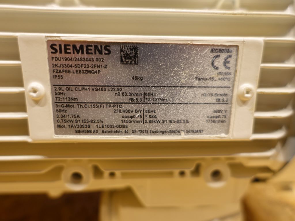 Unused drivework for an agitator in a tank. Motor: 0,75 kW - 1,75 A - n1: 1450 rpm - i: 22,92 - n2: 63,3 rpm.