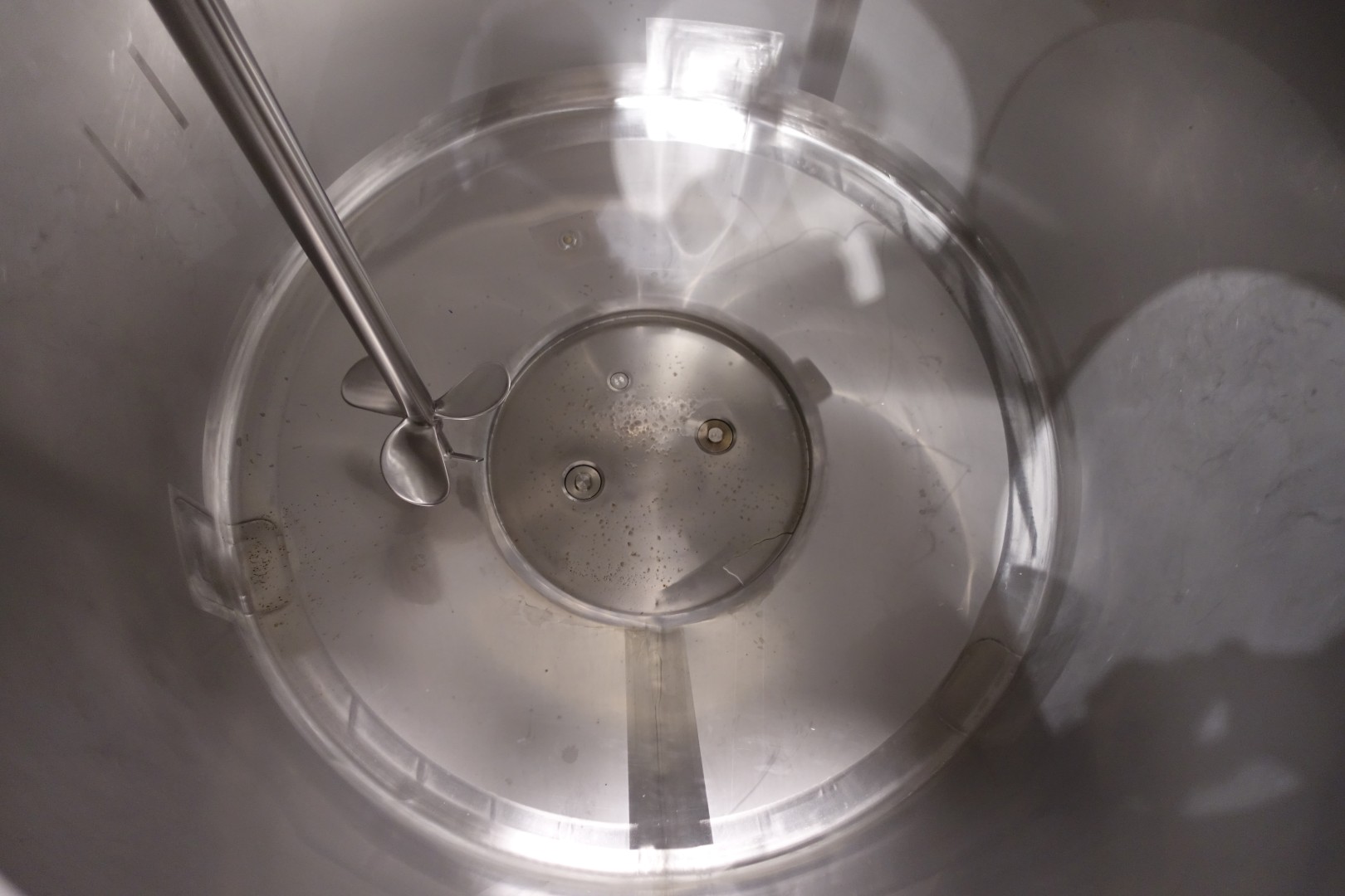 Vertical single jacketed storage tank with Jongia mix agitator. Nominal volume: 2.100 liter. Maximum cleaning temperature: 85°C.Top driven propellor agitator, Jongia type: JDR 7,5/4B - built in 2016 - motor: 5,5 kW - 12,5 A - 710 rpm. With pressure transmitter and outlet valve in bottom. 2 CIP spray bowls of which one in product inletpipe. 3 Adjustable feet. Outlet height ca. 71 cm. With 2x bottom double seat mix proof valves with 2 position sensors make: Südmo (pentair). 2 connections to be able to flush the outlet pipe even when tank is full. Manhole in top round Ø 51 cm. Inside dimensions of tank: Ø 150 cm - cylindrical height: 125 cm. Total dimensions: (lxwxh) 150x150x320 cm - weight: 544 kg.