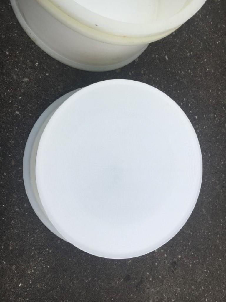 Single forms, Micro perforated. Cylindric with straight corners round shaped. Dimensions cheese: diameter 335 mm, height 140 mm. Weight: 10 kg per cheese. Including mould cover. In total 30 pieces available.