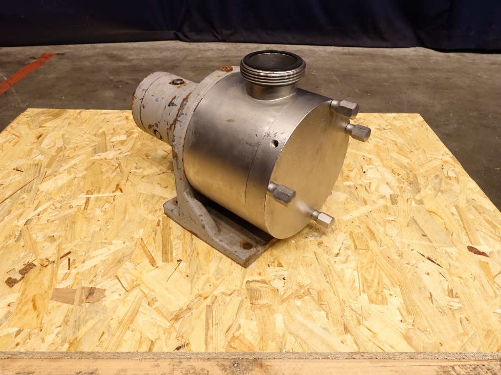 Sine shaped pump. Impellor diameter 165 mm. Displacement per revolution: 0,45 ltr. Maximum particle size: 19 mm. Maximum speed: 600 rpm. No motor or drive. Connections: 3'' / 3'', SMS.