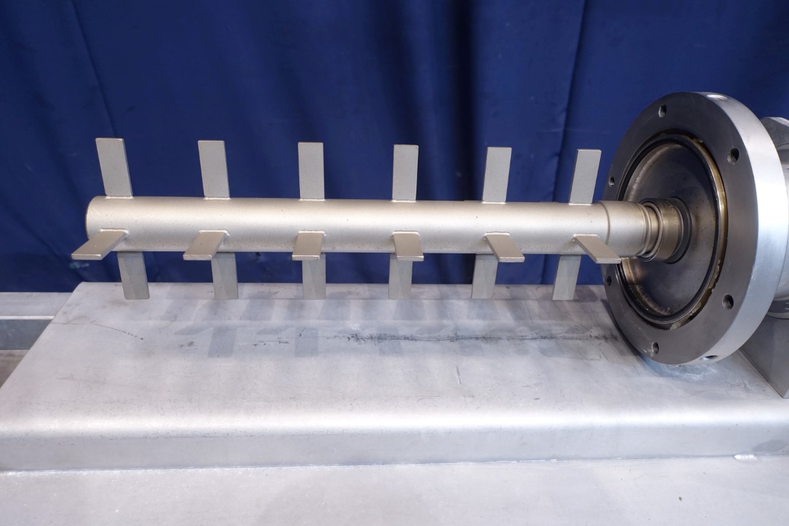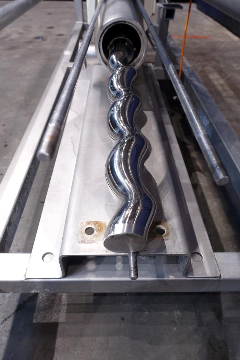 Inline Quark mixing device to add Cream to fresh cheese to increase the fatt content. 2 ingredients, Cream and fresh cheese are added together by regulating the speed of the cream pump (Eccentric screw pump make Seepex, type: BCSO Size10 pressure12bar, 2,3kw) controlled by 2 flowtransmitters (Make Endress & Houser model Promag 53H40. After injecting the cream the 2 ingredients are mixed together in a rotary mixer model KME150 (150mm diameter with a variable speed mixer inside), skid mounted including all by-pass and product valves, sample valve, controls only remote I-O (no plc/program). 2de skid to connect containers with 2 inline filters and by-pass valves. After injecting the cream the 2 ingredients are mixed together in a rotary mixer Miromatic model KME150 (100mm diameter with a variable speed paddle mixer inside), skid mounted including all by-pass and product valves, 3 steamable sample valves, incomplete controls (no program).