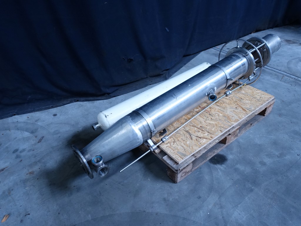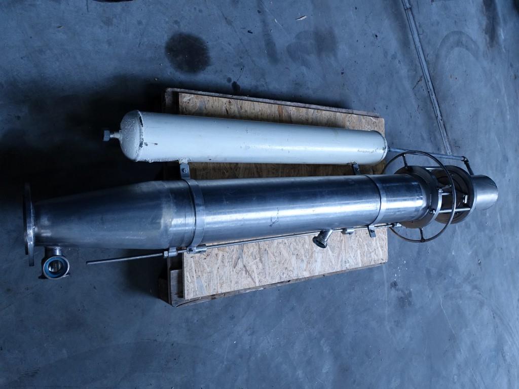 Compensator for margarine, 40 L. Diameter 20 cm, length 130 cm. Connections: 1,5'' Din inlet, flange connection to machine. Total dimensions: 45 x 55 x 220 cm.