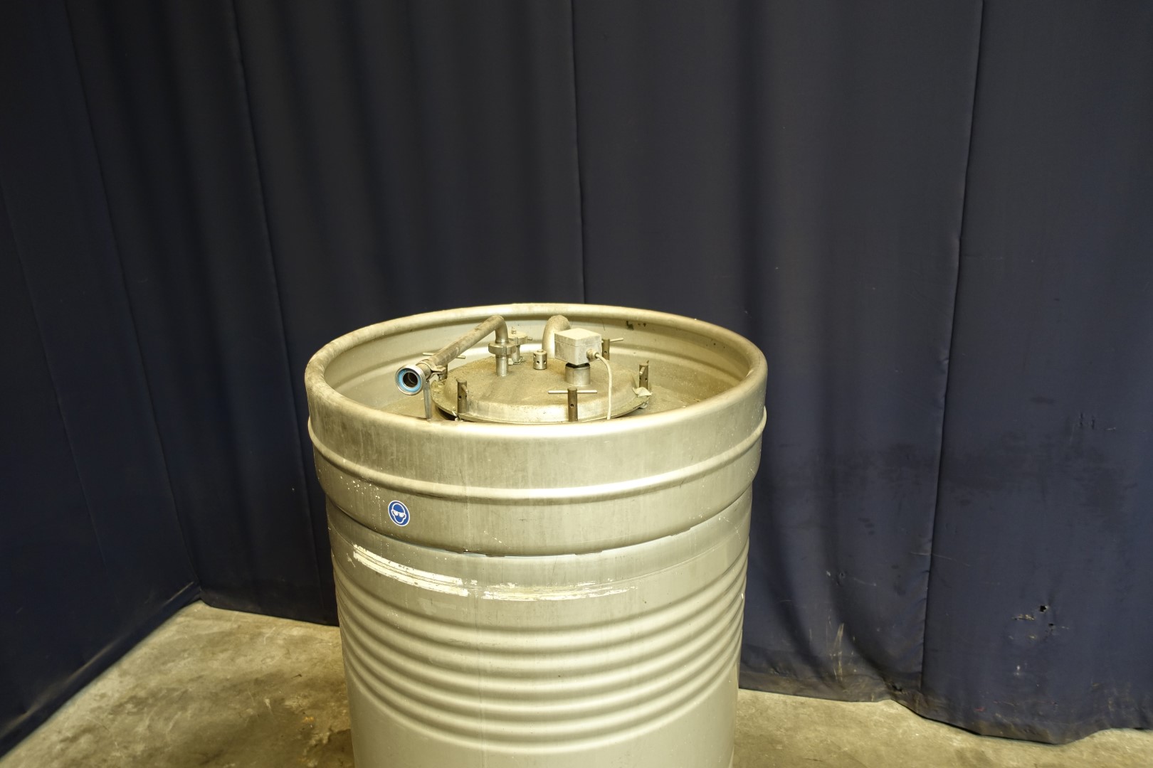 Former fruitpulp transport tank.Movable with forklift. Diameter 100 cm, height 200 cm.