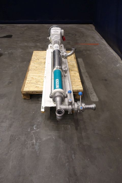 Screw pump. Stator diameter 40 mm. Stator length 450 mm. 5 Windings. Max pressure .. bar. Current motor: 2,2 kW - 5,1 A - n1 1.410 rpm - i = 66-122rpm n2 = pump speed by mechanical variable reductor. Manual by-pass valve. Frame mounted. Connections: (in) 2,5/2 '' Din / (out) 1,5'' Din. Total dimensions: 228 x 50 x 55 cm. With general documentation/folder.nr: 260474 Can be delivered with matching Cooker - Stephan (STN15237).