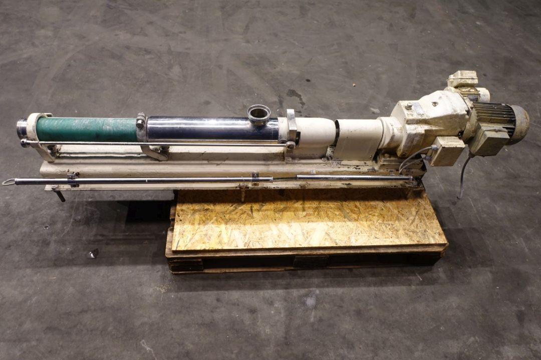 Screw / mono pump. Stator diameter 95 mm. Stator length 50 cm. Current motor: ± 2,2 kW - n2 = 72-360 mrpm. Steel frame mounted. Connections: 2,5''/2,5''.