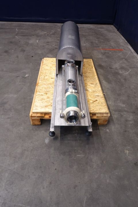 Screw / mono pump. Stator diameter 40 mm. Stator length 25 cm. Current motor: 2,2 kW - n1 2820 rpm - n2 = 571 rpm. Steel frame mounted. Connections: DN65/DN40.