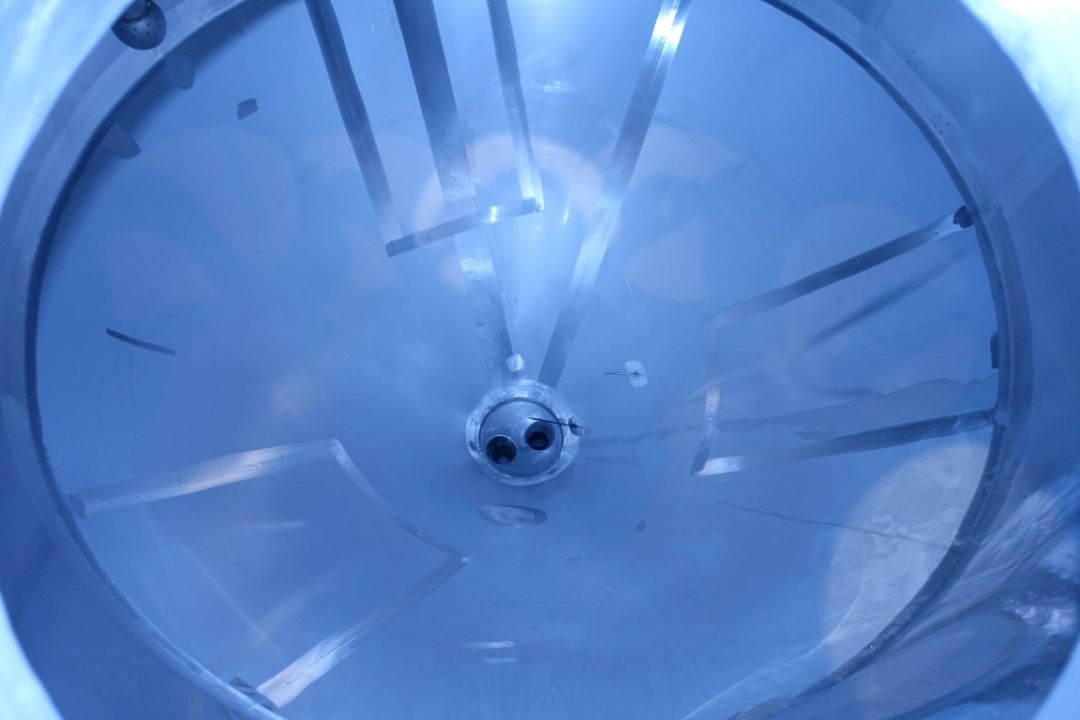 Vertical Quark silo, stark conical for viscose products (like freshcheese/quark), single jacketed. Product outlet by (2 outlets 3" each) with pneumatic butterfly. 2 level sensor and 1 temp, sensor. 2 CIP spray bowl(s). connection for sterile air, Manhole in top, round . 3 Adjustable feet. Inside dimensions of tank: Ø 200cm Total dimensions: 2,3 x h: 3,3 meter.