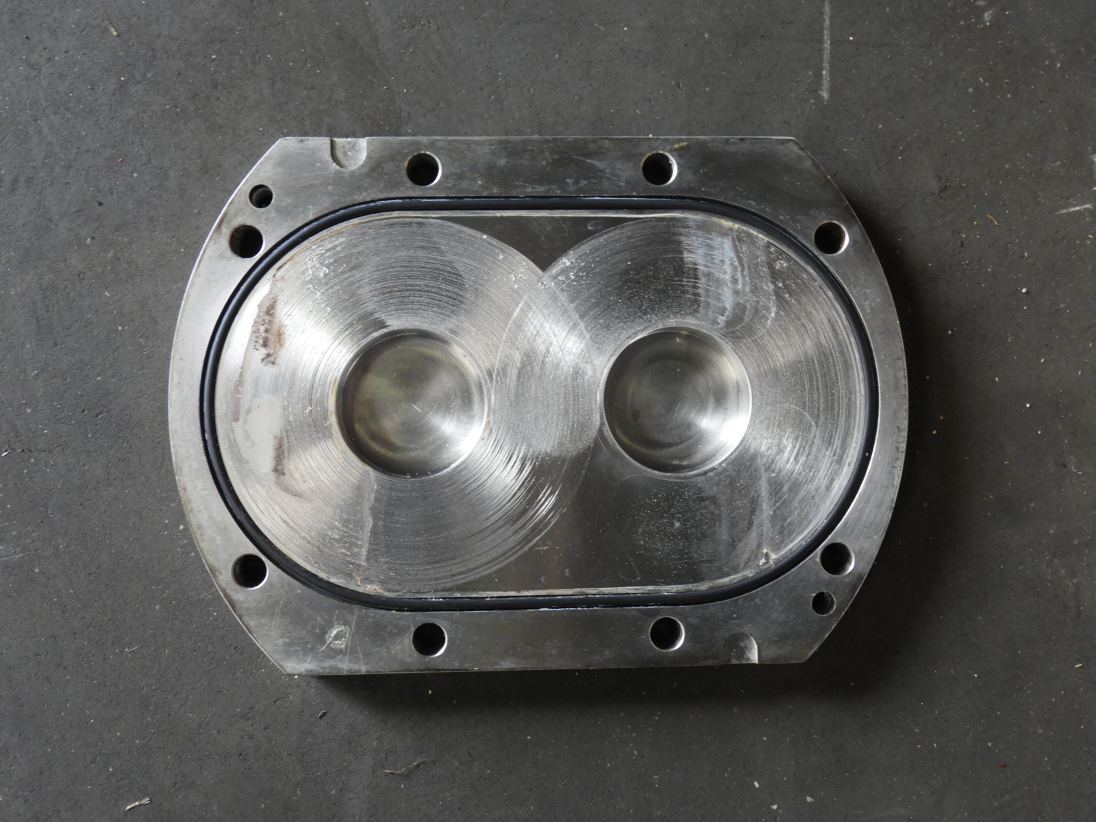 Lobbe pump with duo stainless steel lobbes. Diameter lobbes: 125 mm. Displacement per revolution: 0,55 ltr. Nominal capacity 23,7 m3/h. Maximum: 720 rpm. Current drive work: motor: 7,5 kW - n1: 1450 rpm - i=4,5 - n2: 322 rpm. Stainless steel cover over electric motor. Design pressure up to 10 bar. Mounted on frame. Connections: 2'' / 2'', DIN.