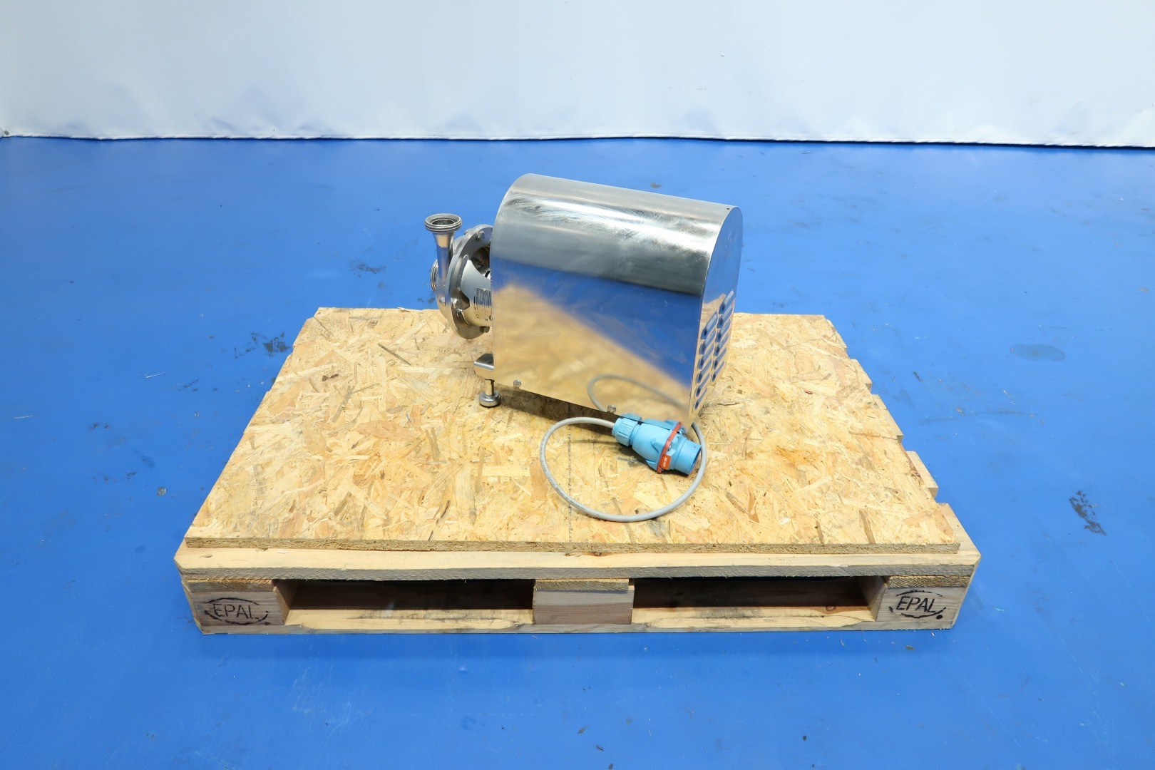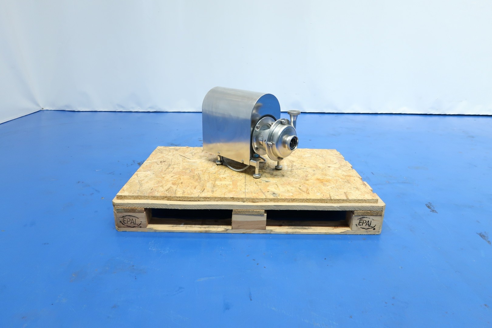 Sanitary centrifugal pump. Motor: 1,1 kW - 2,32 A - 2.790 rpm. Impellor diameter: 90 mm. Connections: (in) DN50 Din / (out) DN40 Din. Dimensions: 55x23x41 (lxwxh) cm - weight: 40 kg.