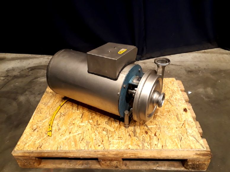 Sanitary centrifugal pump. Current motor: 11 kW - 23 A - 3000 rpm. Impellor diameter: 210 mm. Pressure: 5,5 bar. Connections: 2,5'' / 2,5'' DIN.