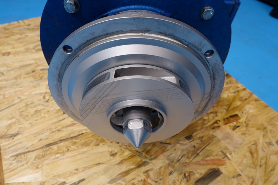 Sanitary centrifugal pump. Current motor: 11,0 kW - 21 A - 2.900 rpm. Impellor diameter: 170 mm. Pressur 3bar at 60m3/h Connections: (in) 3" Din / (out) 3" Din. Total dimensions: 85x41x41 (lxwxh) cm - weight: 151 kg.