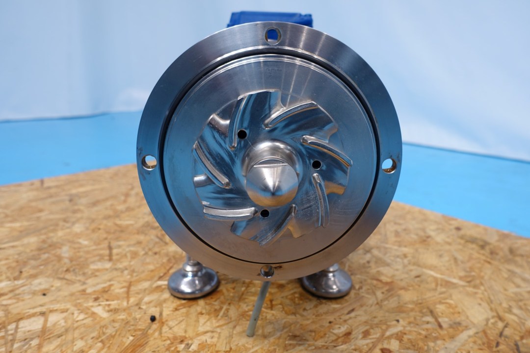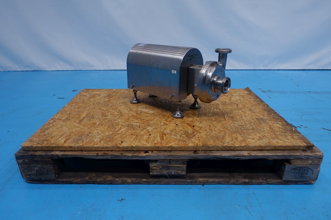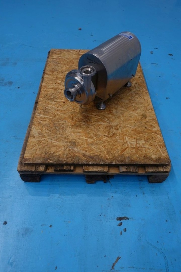 Sanitary centrifugal pump. Impellor: 110 mm. Current motor: 1,5 kW - 3.000 rpm. Pressure: 1,5 bar. Connections: 2''/1,5''DIN. Total dimensions: 56x21x33 (lxwxh) cm - weight: 70 kg's.