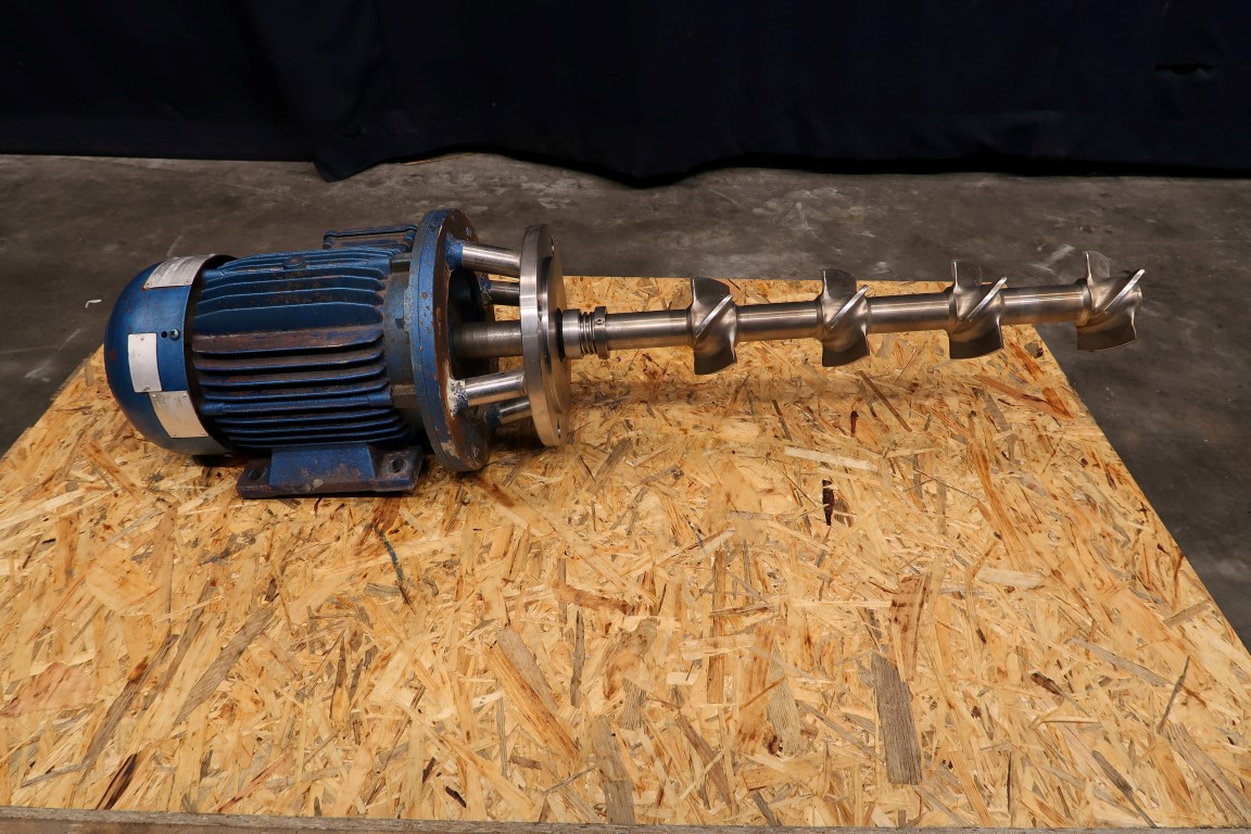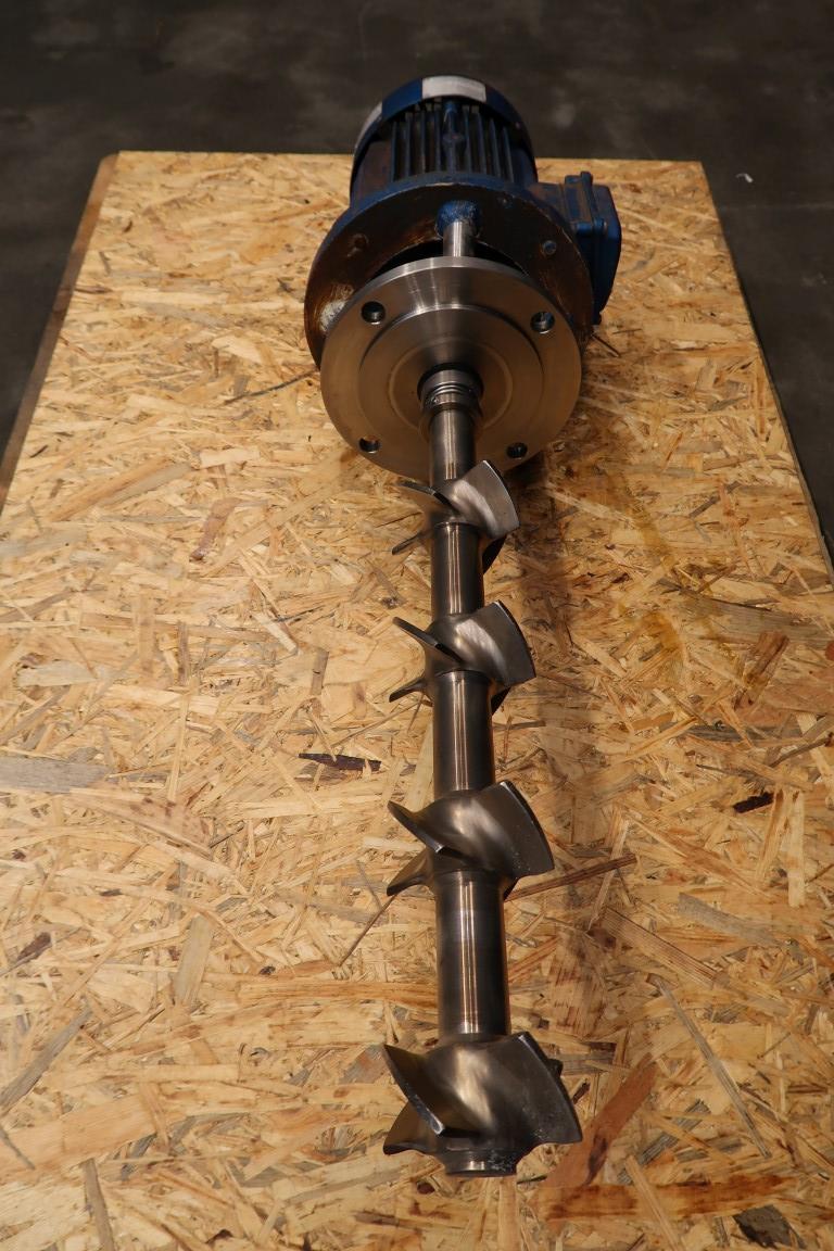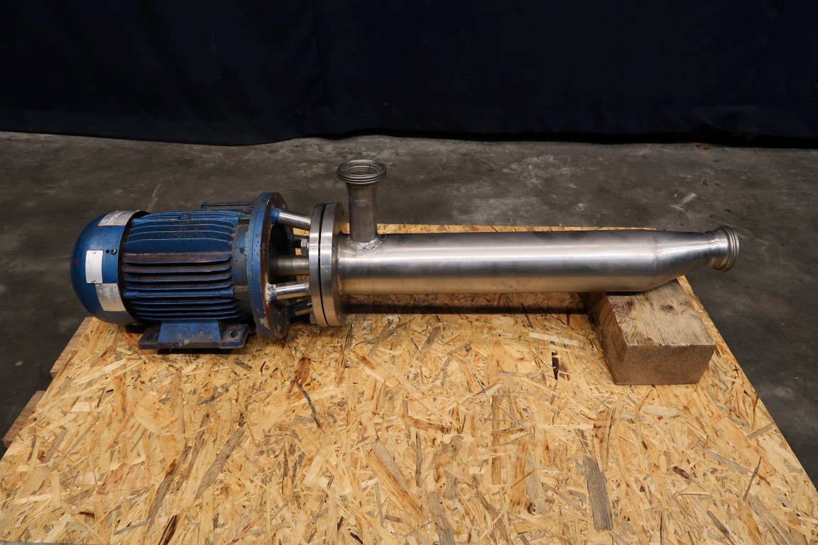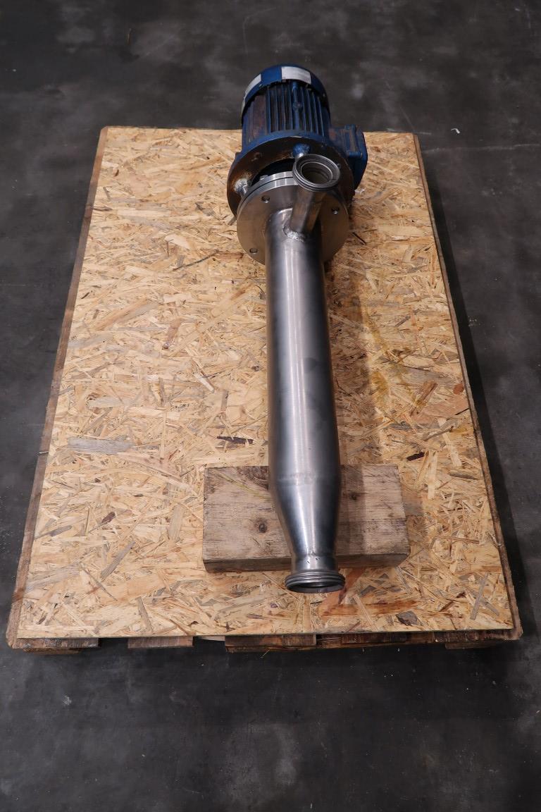 Präzisions Rührer Gesellschaft (PRG) inline mixer. Motor 0,75 kW - 690 rpm. Rotor length: 49 cm. 16x mixing blades on the rotor. Connections: 2'' DIN. Total dimensions: 110 x 25 x 25 cm.