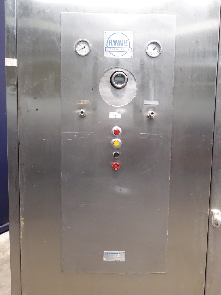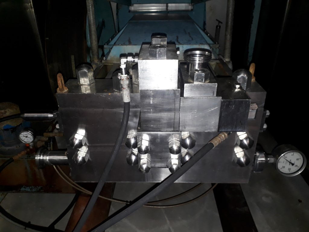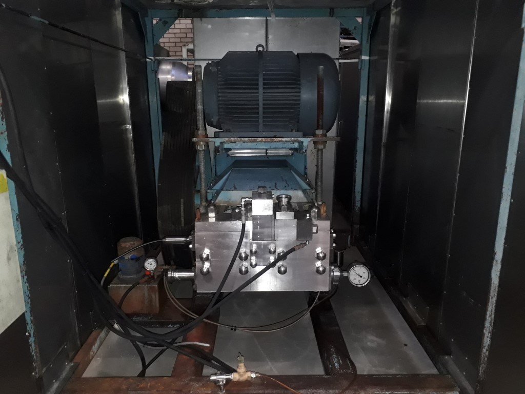 2 stage. Hydraulic pressure control. 3 Pistons, piston diameter: 58 mm and stroke: 79 mm. Sound proof box < 80 dB (Rannie Blue Top Milieu). Connections: 2" / 1,5'' DIN. Current motor power: 90 kW and maximum pressure in current confirguration with this motor 250 bar. Manometer on in/out outlet, electronic pressure transmitter. Excluding: control panel. Total dimensions: 190 x 240 x 220 cm.