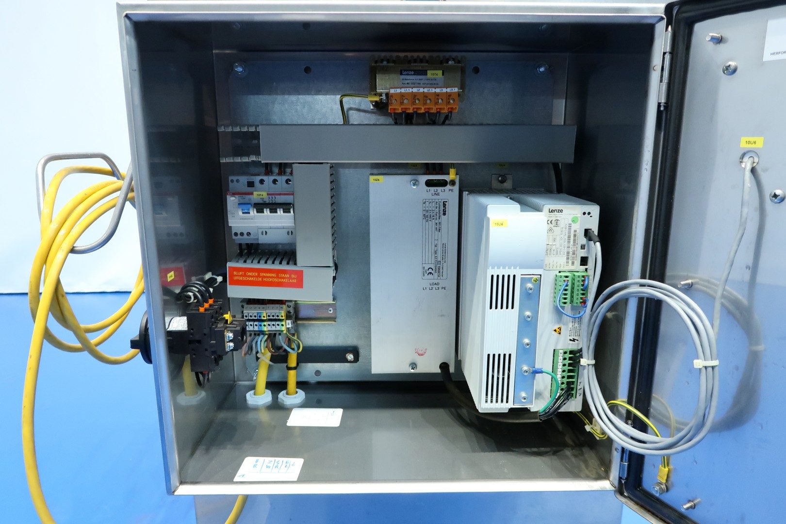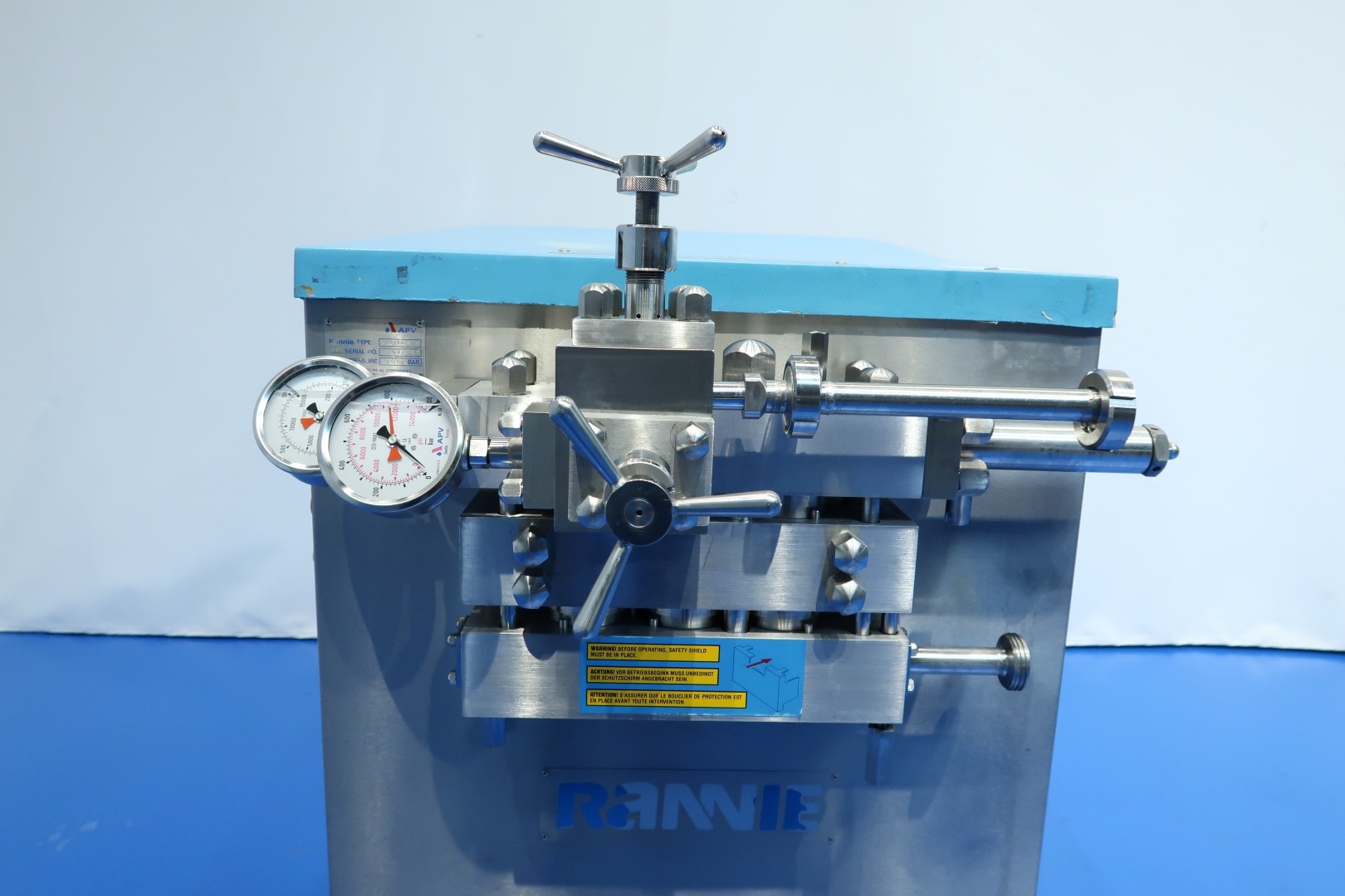 Mobile laboratorium homogenizer. With manual pressure control 1st and 2nd stage and pressure gauges. Piston diameter 12 mm - stroke 51 mm. Motor: 7,5 kW - 15,3 A. Maximum pressure : 1.000 bar. Overpressure valve. Control panel on rearside of machine with frequency converter for variable speed. Total dimensions: 160x100x134 (lxwxh) cm - weight: 520 kg.