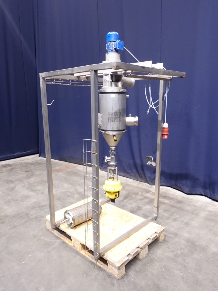 Hygiene Filter with self-cleaning Wiper System. The spiral wiper continuously cleans the surface of the filter element to ensure optimum filtration efficiency. This system is particularly suited for products with suspended solids. Single. Volume: 10 Ltr. Working pressure: 15 bar. Motor: 0,18 kW - 0,65 A - 1380 rpm. Including 2 different types of filters and cleaning systems. Connections: 3'' / 3'', DIN. Total dimensions: 110 x 110 x 210 cm.