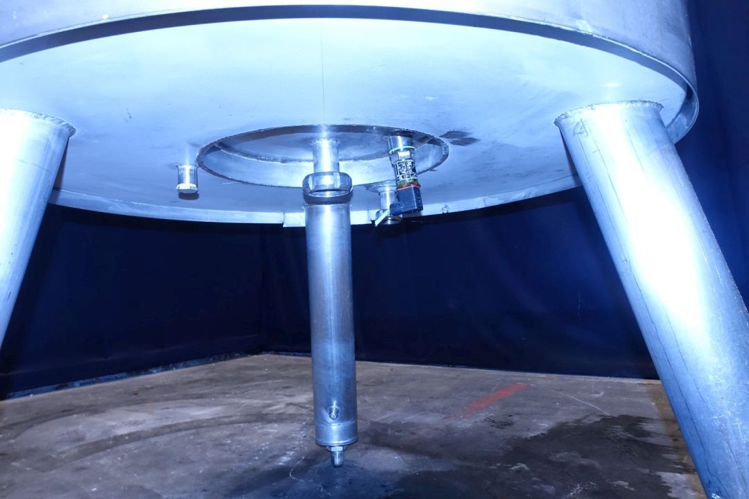 Double jacketed process tank. Top driven double propellor agitator. Motor power: 0,55 kW - n2: 151 rpm. Pressure: 1,5 / 3 bar. Test pressure: 4/-1 bar. Max temperature: 150 °C. Bottom flat, product outlet bottom, 2'' SMS. Sample valve at the side. Connections for: PT-100 tempemperature sensor. CIP cleanable. Manhole in top, round. 3 Adjustable feet. Inside dimensions of tank: Ø 80 cm and height 220 cm. Total dimensions: 80 x 80 x 390 cm.