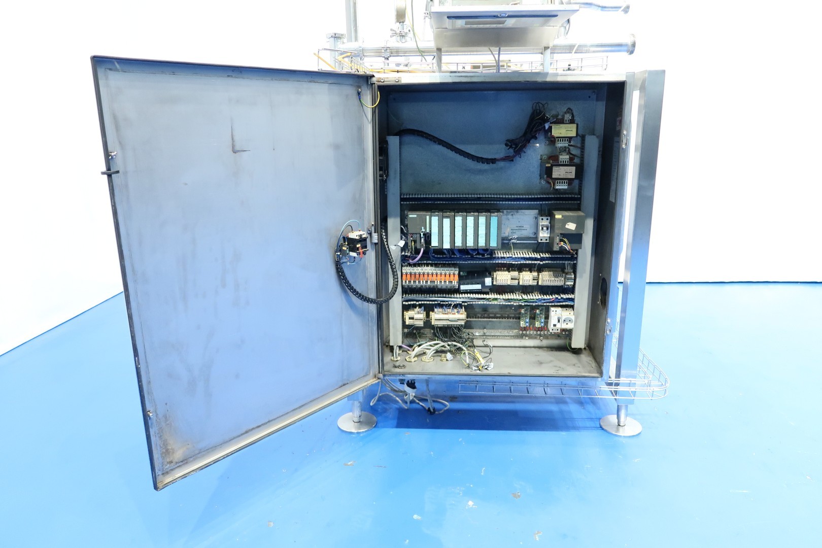 Complete with system to calculate Fat % inline of incoming milk. Unit was previously placed after a Westfalia MSB170-01-076 with capacity 20.000 ltr/h. "Inline standardization unit for milk and cream, complete skid mounted unit System to calculate Fat % inline of incoming milk. Unit should be placed after a skimmer with capacity of minimum 12.000 ltr/h and maximum 25.000ltr/h. With interconnecting piping: 1.) Control panel, 2.) Flow meter, 3.) Density transmitters (Massa flowmeter), 4.) Regulating valves, 5.) On/off valves. Fully automatic with mass flow meters (Endress+Hauser); function inline density measurement. 2 x Promass S (1"" and 2"") with Promass 83. Controls Siemens Simatic S6. Connections: cream 1,5"" SMS and skimmilk 2,5"" SMS. Total dimensions: 150x140x202 (lxwxh) cm - weight: 275 kg. Input date: - Required fat % in cream 20-40% - Required fat % in standardised milk 1-4.5%