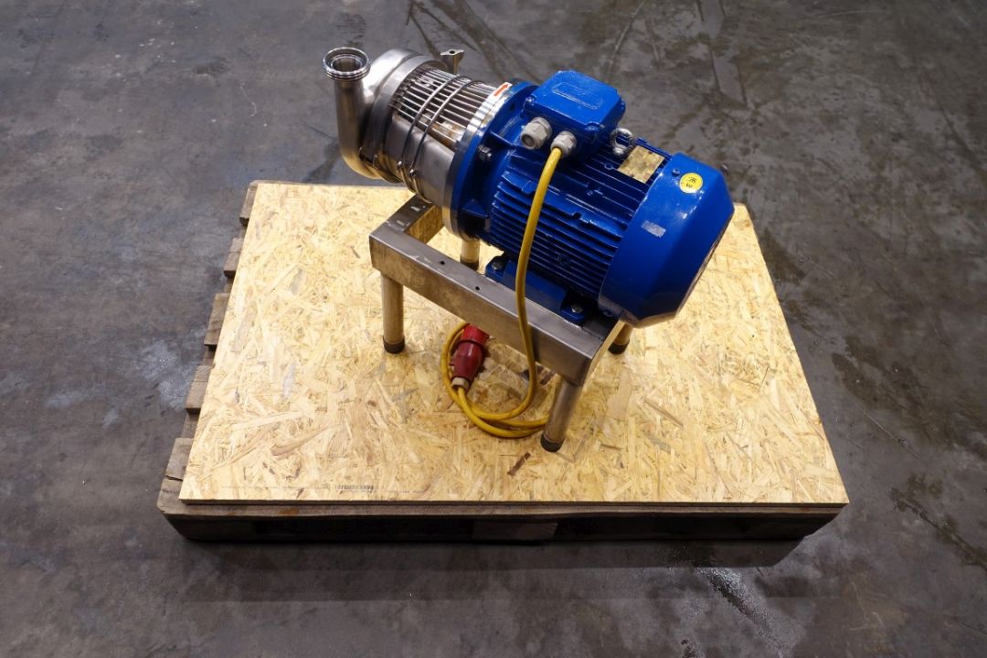 Sanitary centrifugal pump. Current motor: 4,0 kW - 7,4 A - 2925 rpm. Pressure: 4 bar. Impellor diameter: 150 mm. Connections: 2'' / 1,5'', DIN.