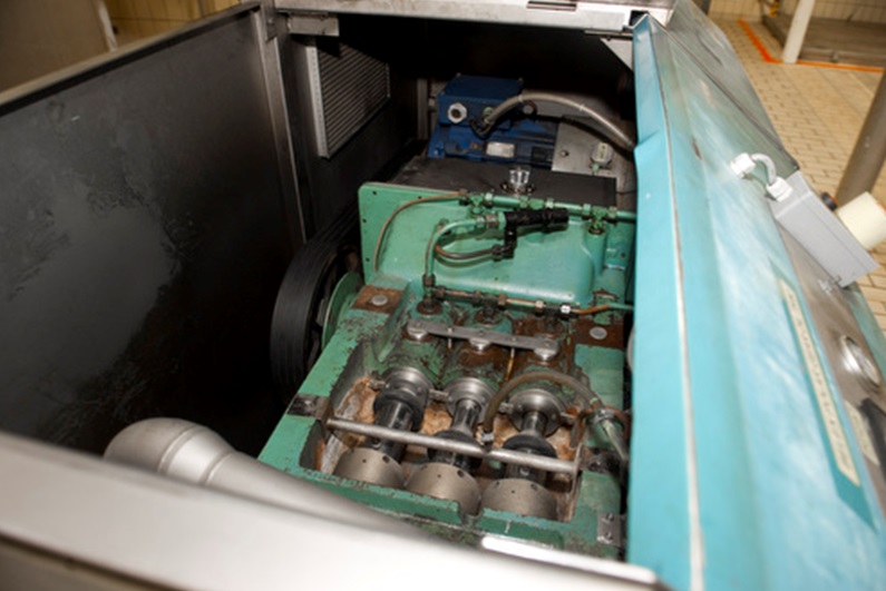 Stork HL-05 high pressure pump. Pressure up to 70 bar, piston diameter: 70 mm, stroke: 90 mm. Motor: 30 kW. Outside dimensions: 270 x 132 x 140 cm. Part of UHT line for Evap milk 6.000-9.000-10.500ltr/h (STN10544).