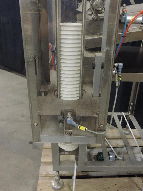 Cup destacking unit for preformed cups with a diameter of 95 mm. Single head. Pneumatic. Motor: 0,09 kW. Control panel with Siemens S7-200 PLC. Total dimensions: 130 x 80 x 190 cm.