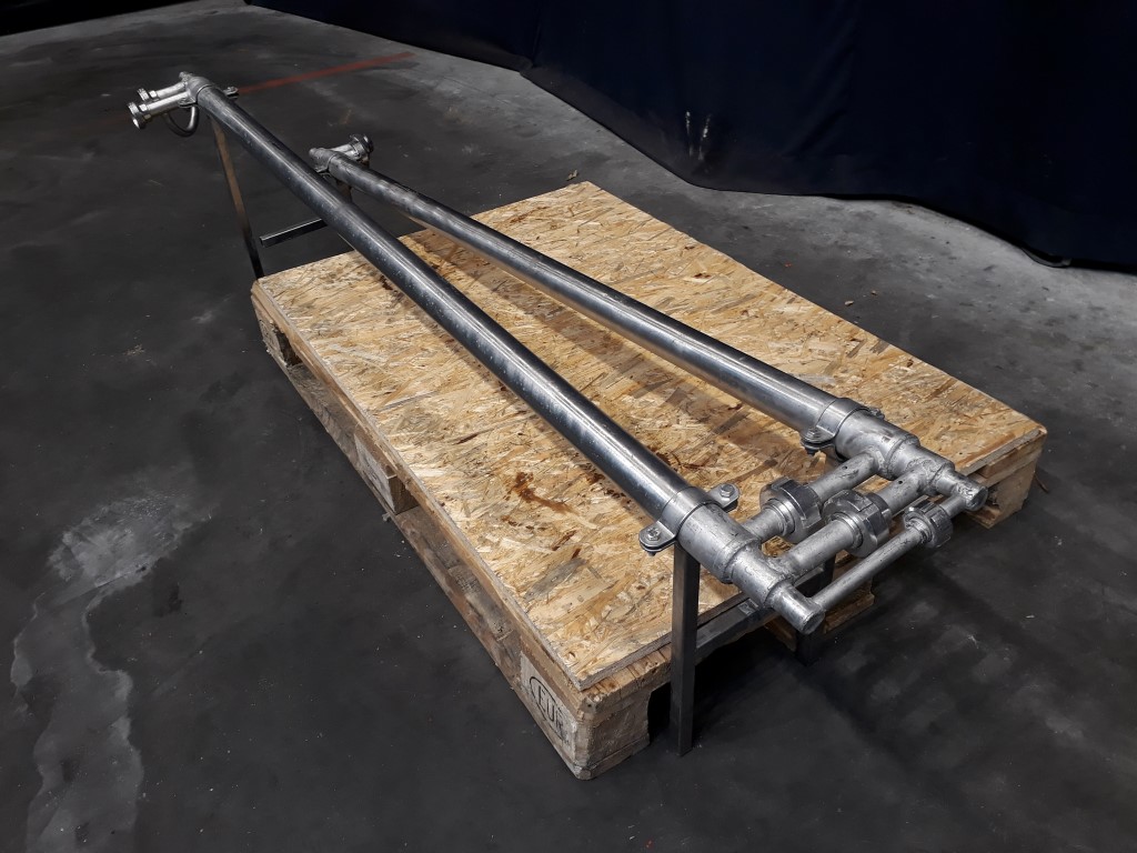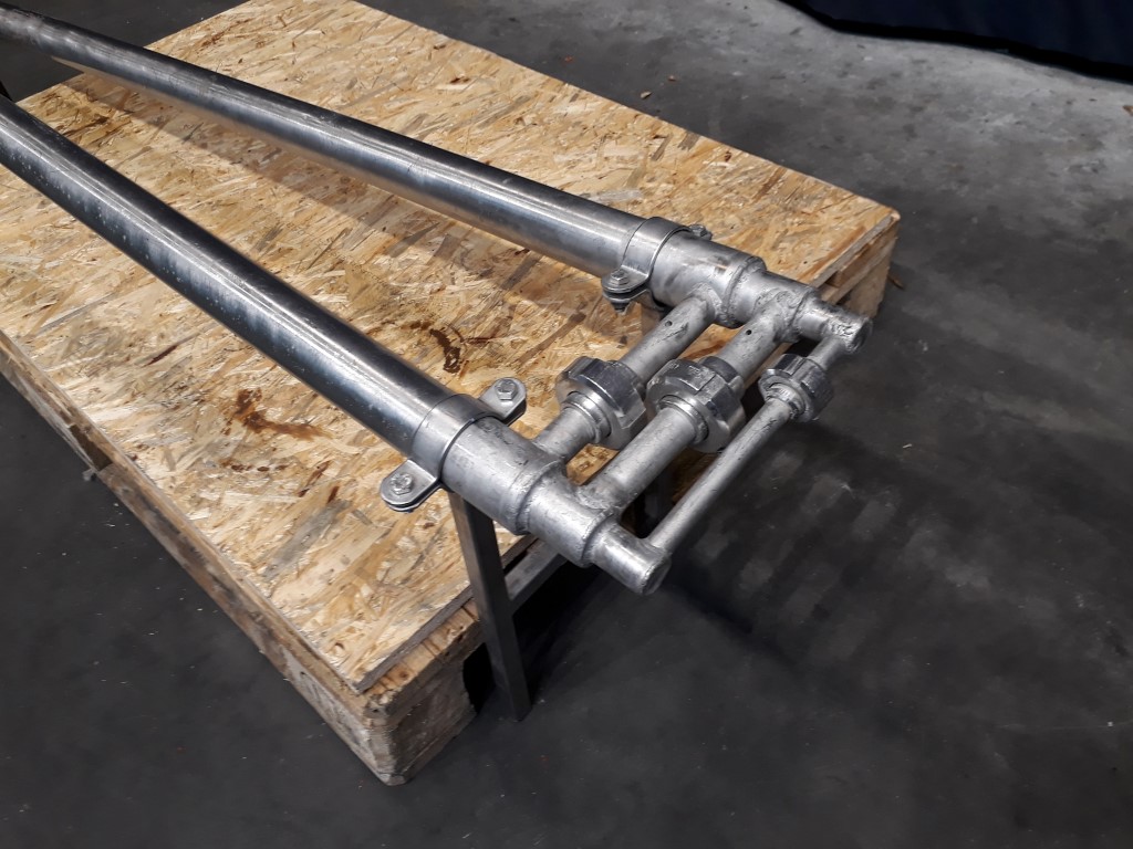 Monotube. Straight design. 2 Tubes, 1 section. Length: 1,5 mtr. 1'' , 1,5'' and 2'' tube in each other (triple tube). The inner tube 1,5'' is for product. Connection: product: 1'' DIN, service: 1'' DIN. Placed on frame inclinde (to be drainable), Including bends.