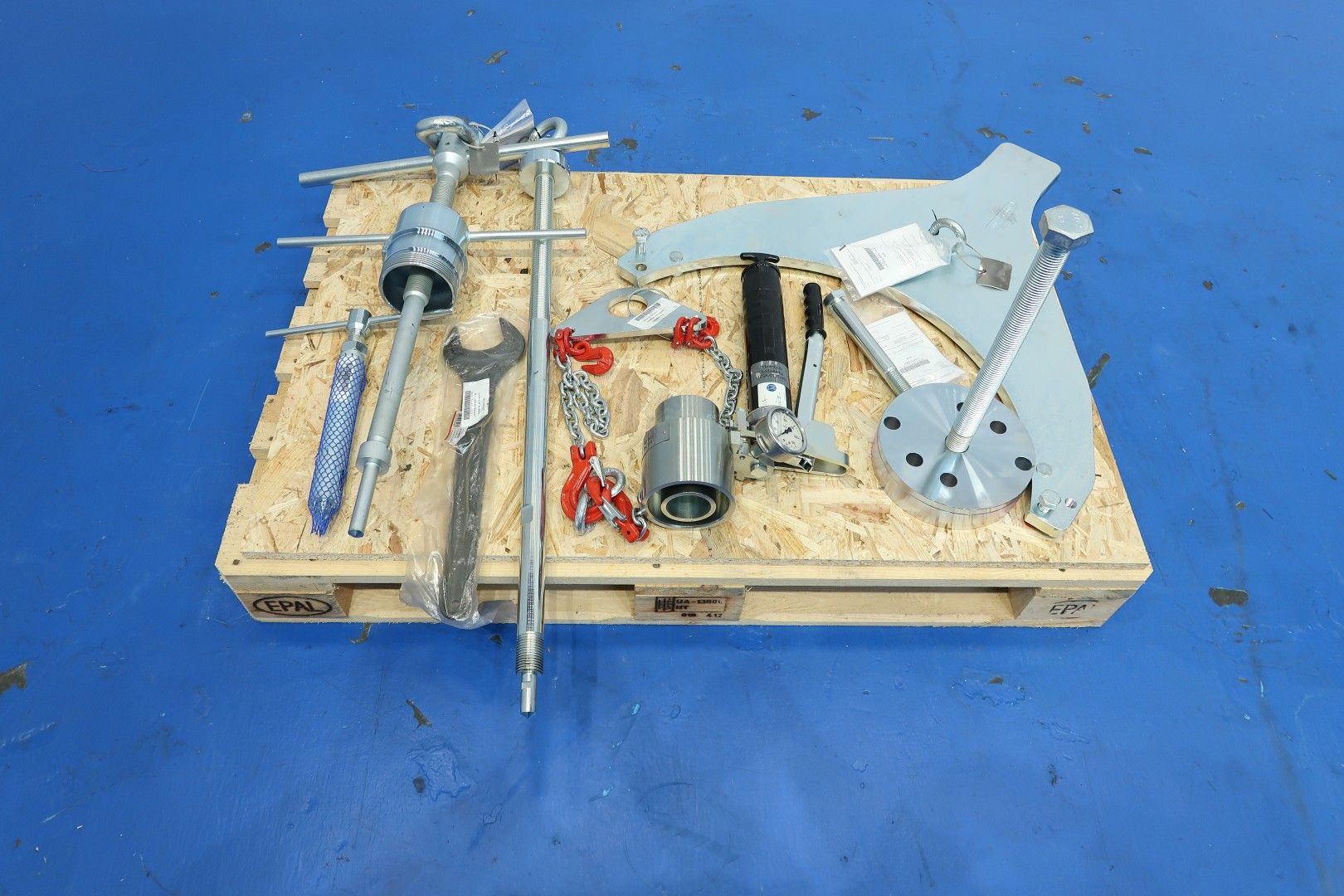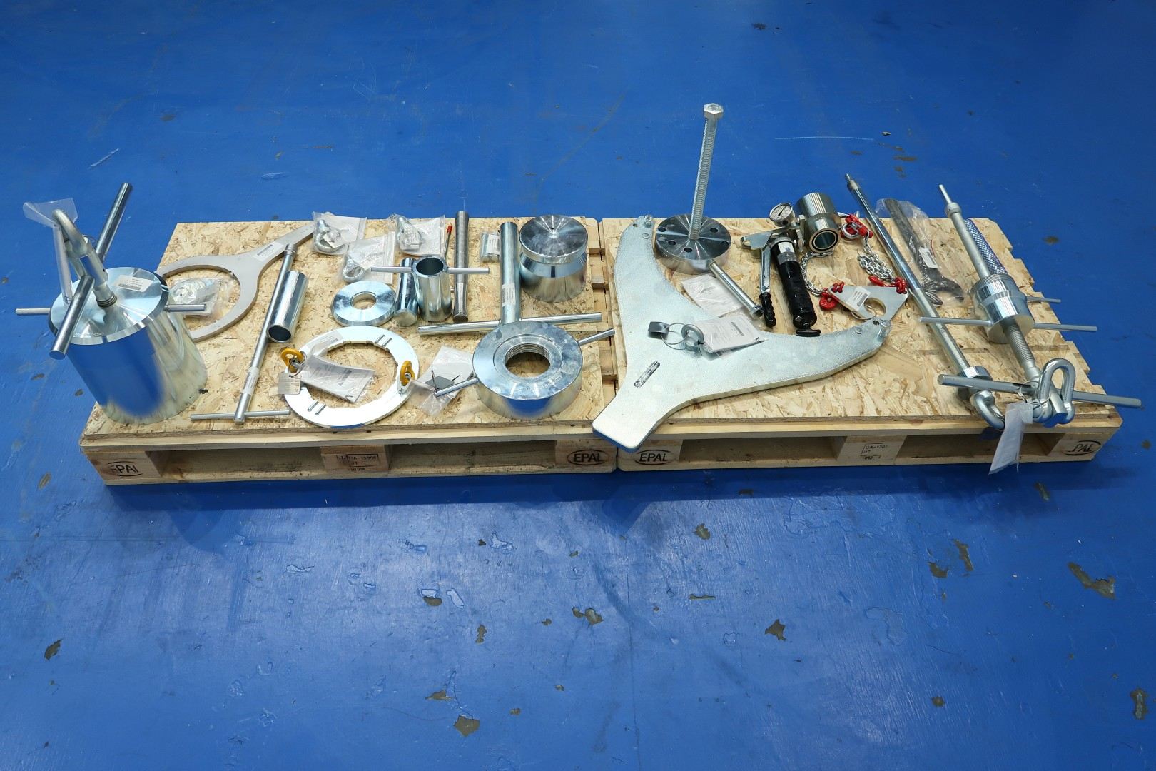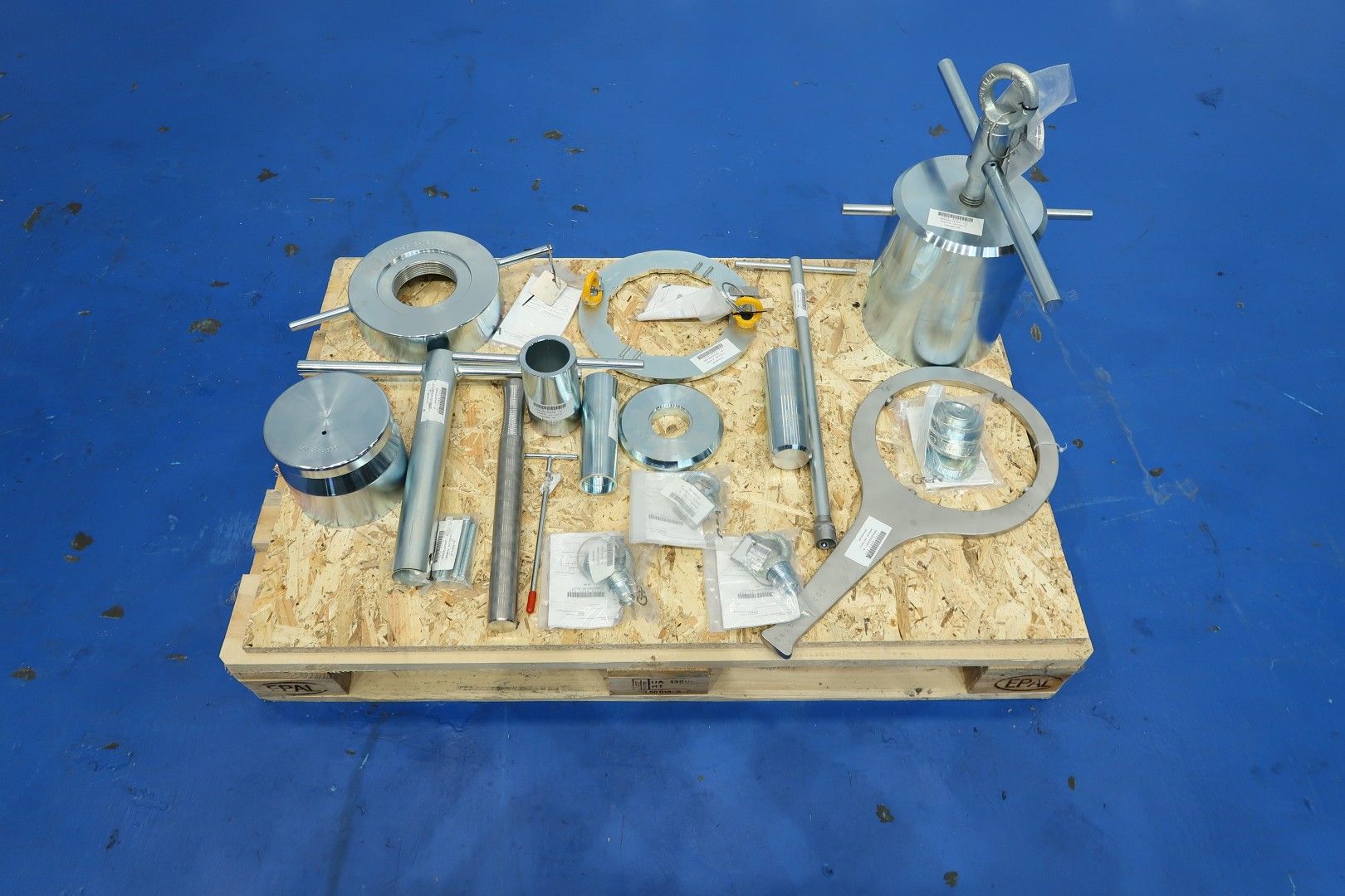 Separator toolset for a CS400-01-777 or a CSE500-01-777 Westfalia bactofuge machine. This set is unused, new condition. Including pressing tool and ringkey which also suits other models like MSE500. List with part numbers available. Complete tool set GEA ordering number: 4571182110
